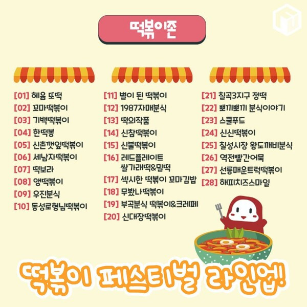 작년 19개의 떡볶이 부스가 열렸던 반면, 올해에는 더욱 규모가 커지며 총 28개의 떡볶이 부스가 열릴 예정이라고 밝혀왔는데요. 그 외에도 다양한 음료와 먹거리 부스가 마련될 예정입니다.