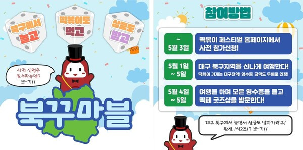 이번 대구 떡볶이 페스티벌에서는 떡볶이 페스티벌뿐만 아니라 대구 북구 전체를 여행하며 상생을 목표로 두고 있는데요. 5월 3일까지 떡볶이 페스티벌 홈페이지에서 사전 참가 신청이 가능합니다.