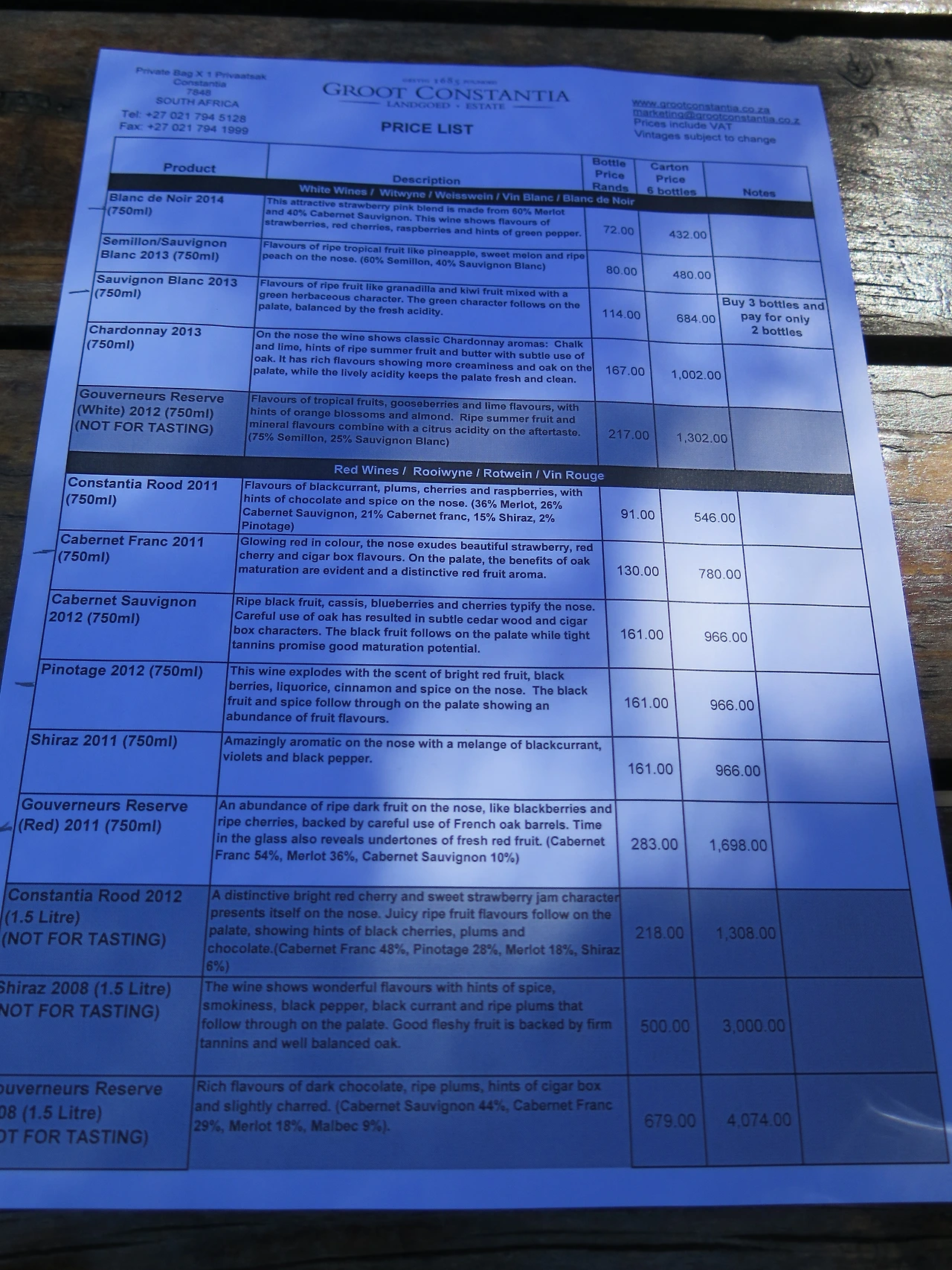 케이프타운과 빈트후크 모두 대중교통비는 한국과 비교하여 절반 수준이고, 식사와 식료품은 한국보다 조금 더 저렴한 편이다. 2014년 8월 기준 빅맥 단품은 2,400원이며 맥주 한 병에 900원이다. 관광지 입장료는 대부분 성인 기준 3,000원에서 5,000원이다.
