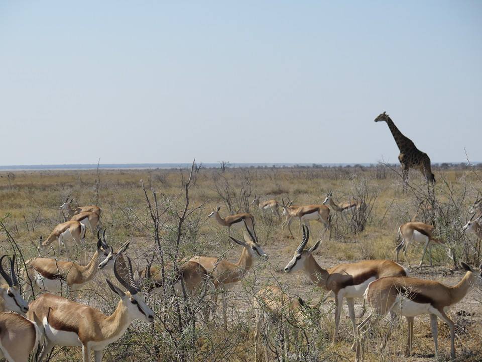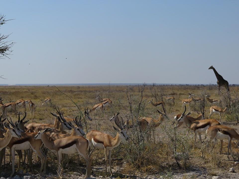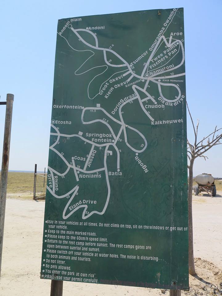 약 114 종의 포유류, 340 종의 조류, 110 종의 파충류, 16 종의 양서류, 우기 동안에는 최대 49 종의 어류가 분포하는 22,270 평방킬로미터 면적의 거대 국립공원. 나미비아 남쪽의 나미브 사막과 더불어 나미비아를 대표하는 두 관광지 중 하나이다. 빈트후크나 스바코프문트 시내에서 투어를 이용하여 방문할 수도 있으나 일행이 있다면 차를 렌트하여 오는 것이 경제적이다.