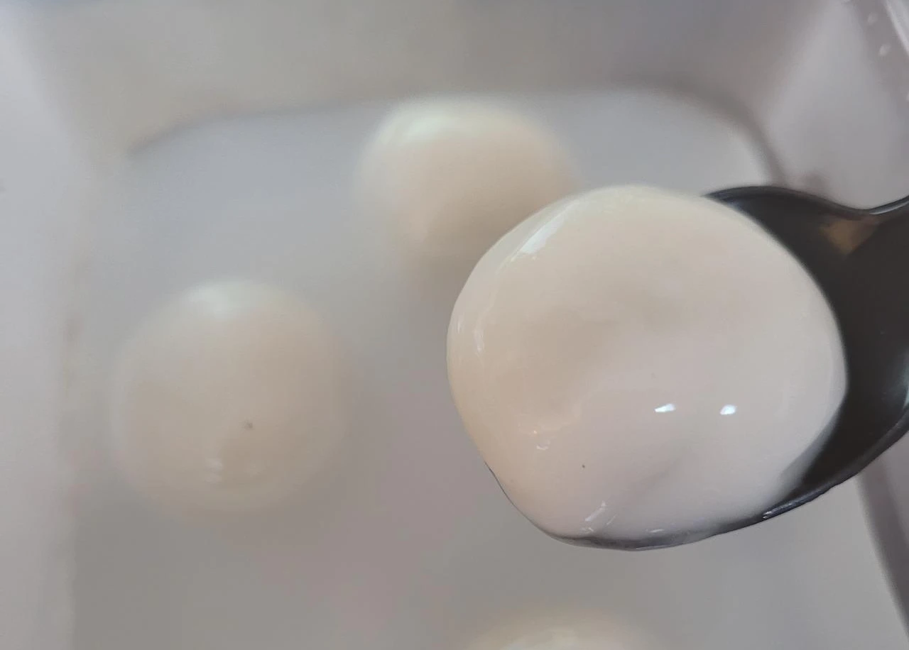 한 번 먹어보고 그대로 남겼다. 찹쌀가루로 만든 새알심이 몇 개 들어가 있는 국물이다. 새알심 안에는 팥고물같은 소가 들어가 있다. 국물과 새알심의 조화가 안어울린다는 생각이 들었다. 국물 맛은 슴슴하다. 간이 안되어 있다. 숭늉같은 맛이었다. 입맛에 맞지 않아서 남겼다. (김 부장 입맛이 까다로운 편은 아니다.)