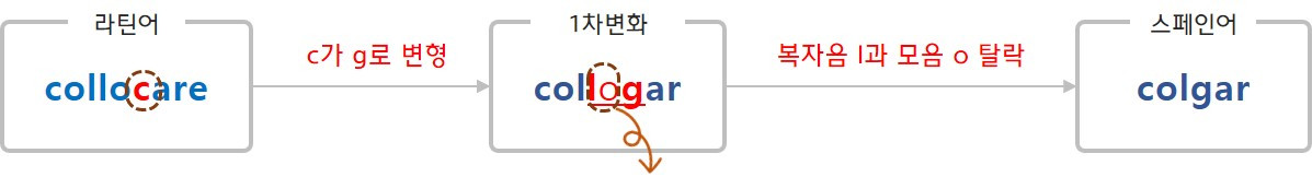 스페인어 colgar(매달다)는 라틴어 collocare에서 유래했다. 라틴어 collocare는 col + locare로 분리된다. col은 '함께'라는 의미, locar는 '장소'의 의미가 있다. 영화나 드라마에서 ‘해외 올 로케’라고 이야기하는 경우가 있다. 그 때의 loca에도 장소의 의미가 들어가 있다.