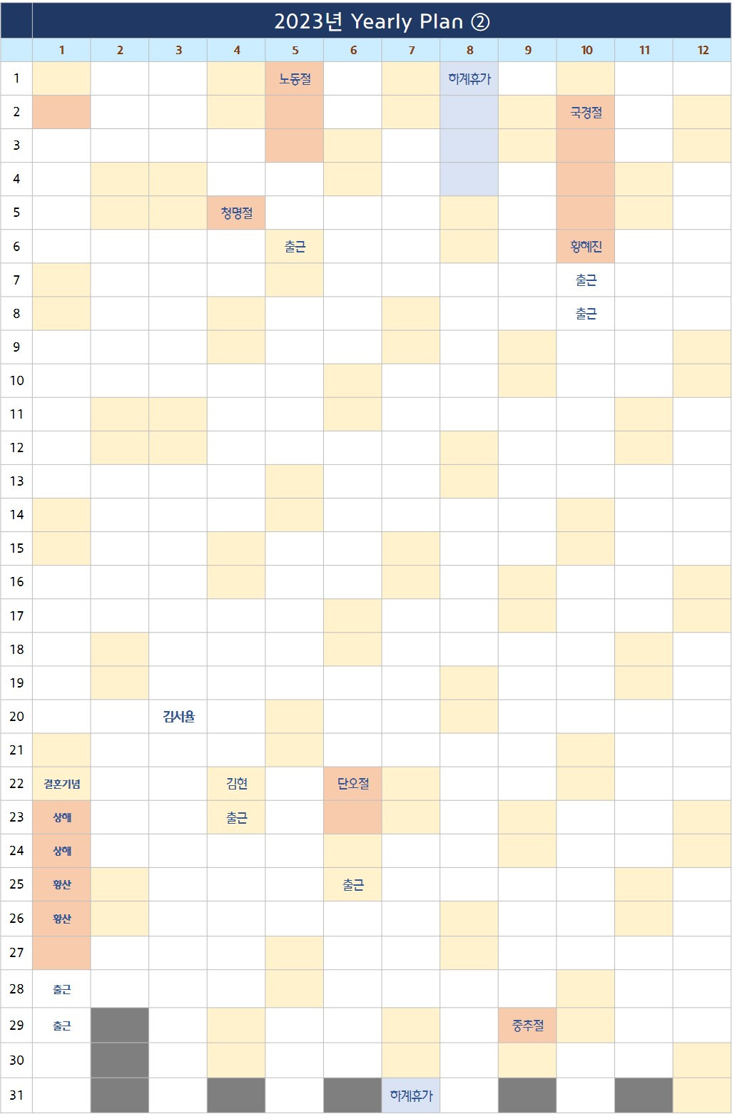 1년 일정을 한 눈에 파악할 수 있다. 해당 월에 필요한 예산을 가늠하는 데에도 도움이 된다. 특정 월에 주요 이벤트가 몰려 있다면 이에 맞춰서 예산을 준비할 수 있다.