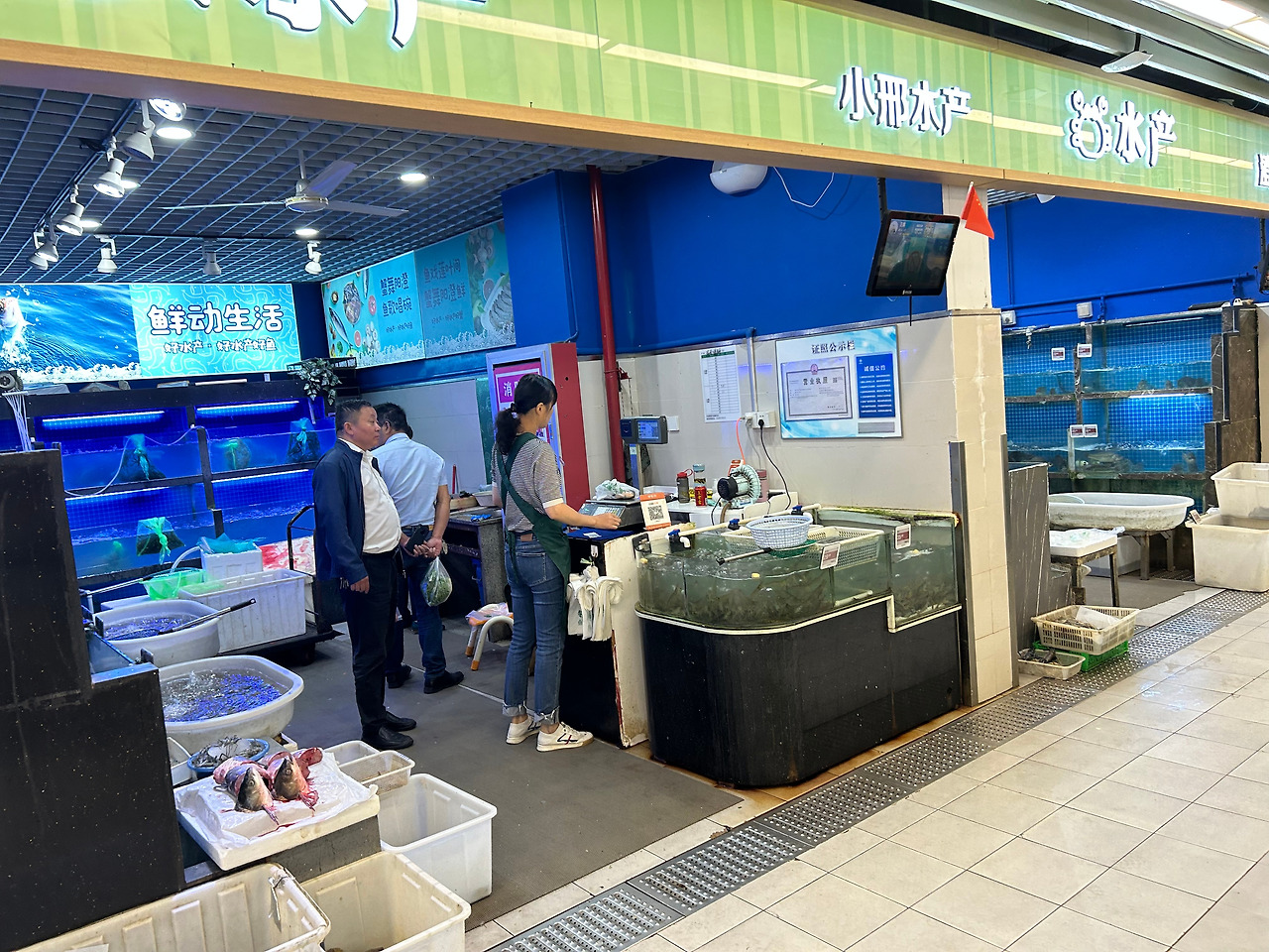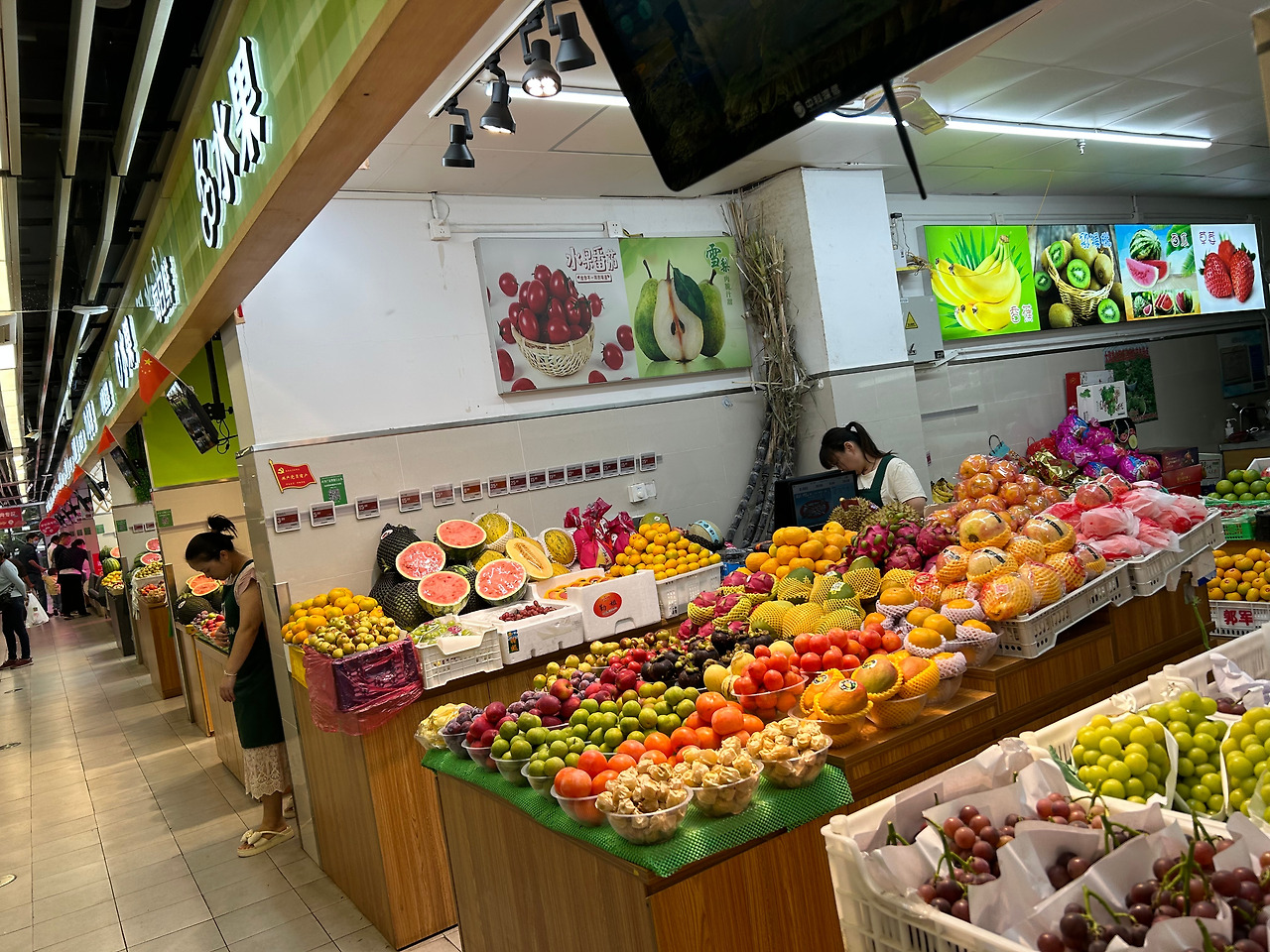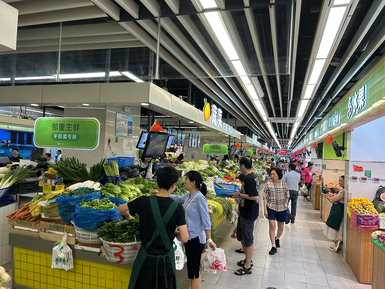 쇼핑몰내에 현대화된 시장이 자리잡고 있습니다. 중국어가 통하지 않아도 쇼핑에는 문제가 없습니다.