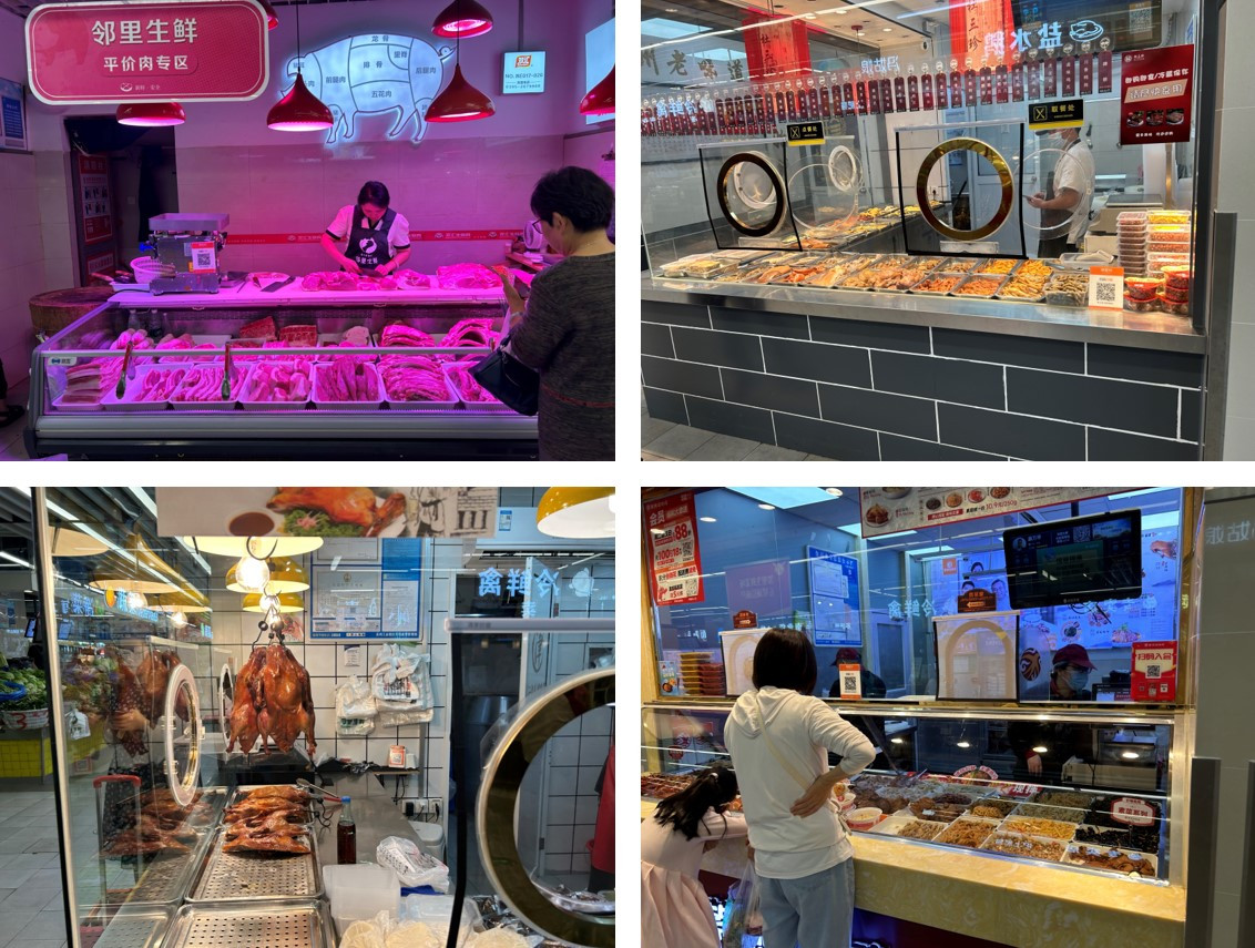 정육점도 있고 생산 가게도 있습니다. 다양한 찬거리를 파는 가게들도 보입니다. 중국 찬거리는 패스합니다. 아직 중국 찬거리를 먹을 정도로 중국 생활에 현지화되지는 않았습니다.