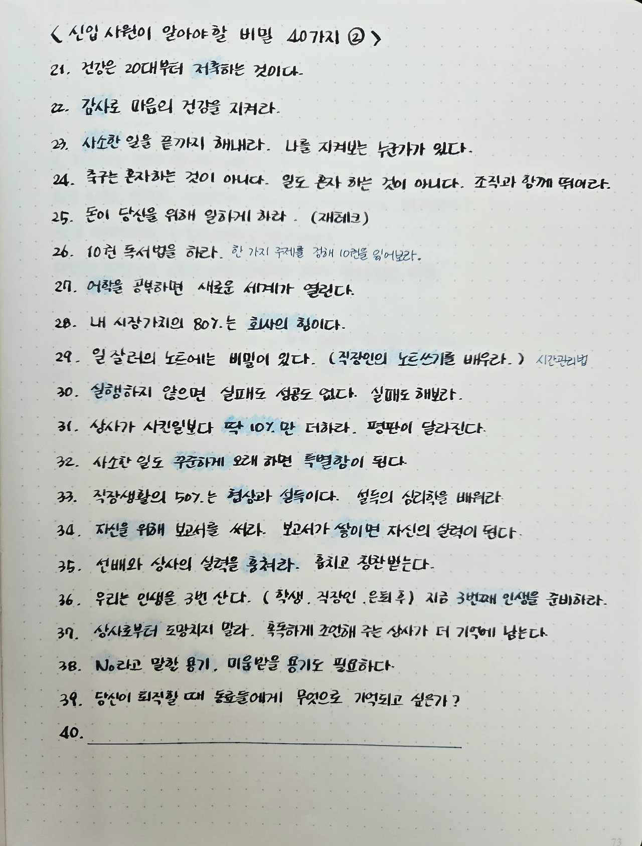 신입사원에게 40번째 조언으로 무엇을 해주시겠습니까?