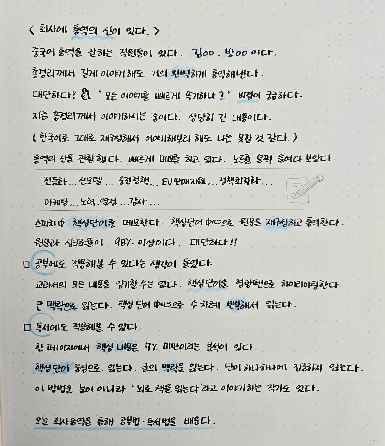 오늘 회사 통역을 통해 공부법·독서법을 배운다.