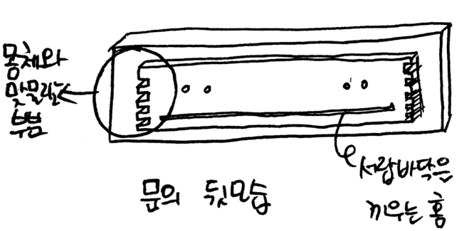 이후로 서랍을 열 때마다 힘이 갑자기 문으로 쏠리지 않게 조심했다. 몇 달 정도는 잘 썼다. 그래서 조심히 열어야 하는 걸 잊기도 했다. 방심한 날이면 문이 또 떨어져 나왔다. 점점 분리 주기가 짧아졌다. 그리고 작년 말 완전히 분리되어 다시는 합칠 수 없었다. 서랍은 입을 벌린 채 담고 있는 물건을 다 내보였다. 문짝은 버리지도 숨기지도 못했다. 벽에 기대어진 모습이 눈에 걸릴 때마다 마음이 어수선했다.