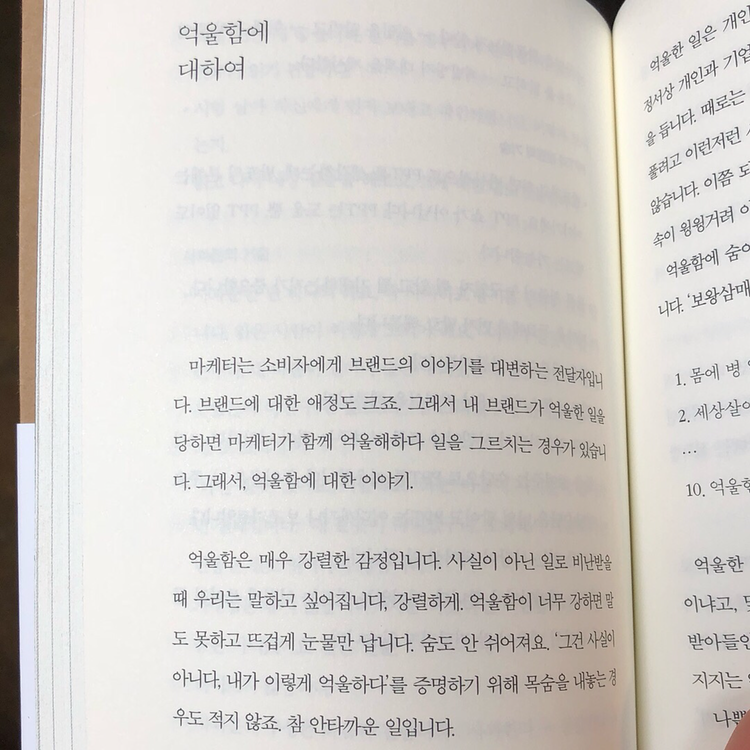 이사님은 원고를 팀원들에게 미리 보여주시며 피드백을 받았다. 이제 막 회사에 들어온 막내사원의 의견까지 귀 기울이는 모습이 낯설면서도 따뜻했다. 한국에서 나름 많이 알려진 브랜드를 이끄는 40대 남성 이사로서 가진 권력이 본인도 모르는 새에 책에 드러나 혹 누군가에게 불편함을 주지 않을까 염려했기 때문일 것이다.