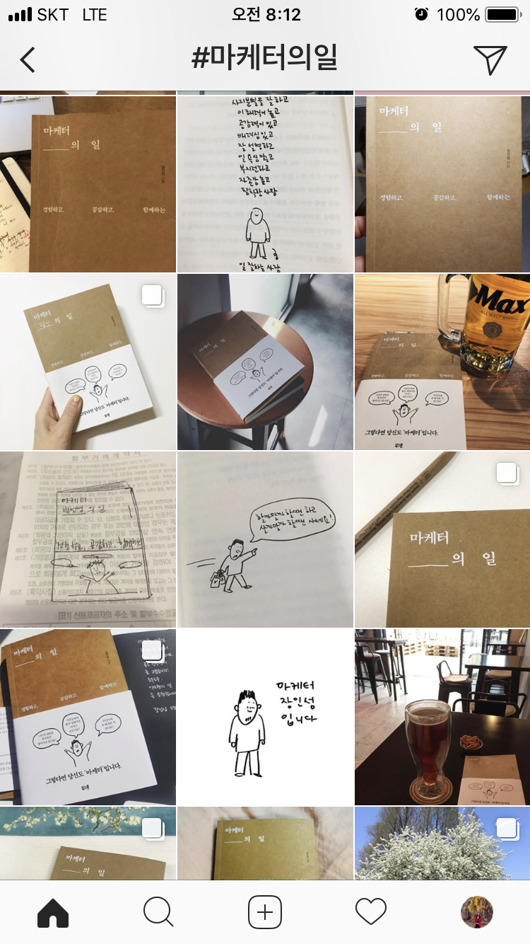 #마케터의일 해시태그를 팔로우 했다. 이 책을 읽고 있는 사람들의 상황, 책을 읽은 감상, 가장 좋았던 부분을 엿보고 있다. 반복적으로 포스팅되는 페이지들이 몇 있는데 ‘성격 나쁜 동료와 일하는 방법’, ‘할까 말까 할땐 하고, 살까 말까 할 땐 사세요.’, ‘일 잘하는 사람’ 이 대표적이다. 하지만 사람은 자기 상황에 비춰 책을 읽기 마련인지 공감하는 부분이 다양한 것도 관전 포인트다. 또 하나 재미있는 지점은 이 책이 <마케터의 일>인 바람에 마케터만 읽게 될까봐 걱정하는 사람이 많다는 거다. 마케팅을 잘 하려면 우선 일을 잘 해야 한다는 저자의 말처럼 사실 우리가 하는 일의 본질은 크게 다르지 않다. 디자이너든, 인사담당자이든, 공무원이든, 선생님이든 어떤 형태로든 조직에 몸 담고 있거나 다른 사람과 커뮤니케이션을 해야하는 회사인간이라면 <마케터의 일>을 읽자. 문제를 정의하고 해결하는 모든 일들에 좋은 친구가 되어줄 것이다.