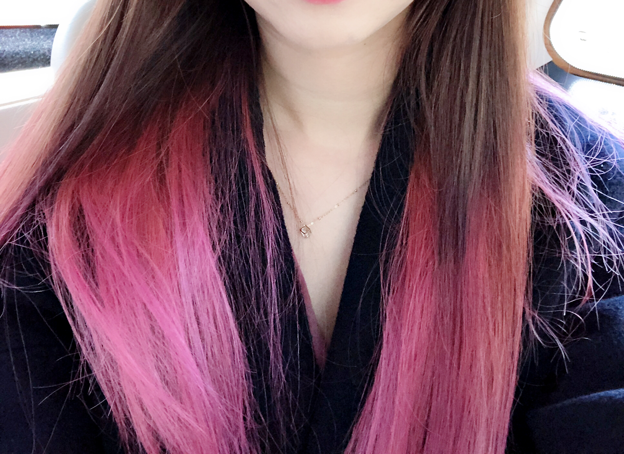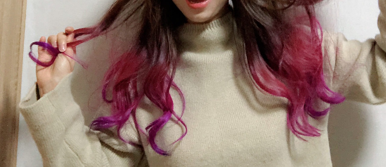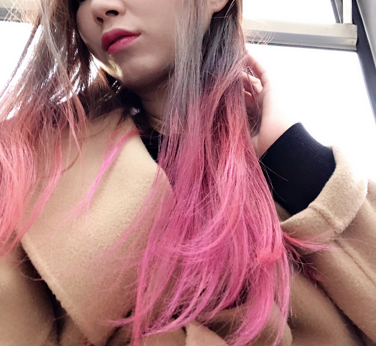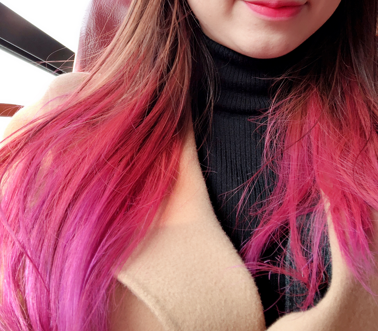 모든 걸 떠나 재미있었다. 내 원래 머리색, 모발상태, 염색할 때 배합한 색깔들, 사용하는 샴푸 등등에 영향을 받아 예상하지 못한 색으로 변하는 머리를 볼때마다 “우와 탈색 꿀잼이다!” 하고 혼잣말을 했다. 진한 퍼플은 빨강을 거쳐 핑크로 변했고, 진한 파랑은 카키빛이 도는 하늘색이 되었다. 빛이 있고 없을 때나 어떤 색의 옷을 입었느냐에 따라 달라지는 느낌도 즐거웠다.