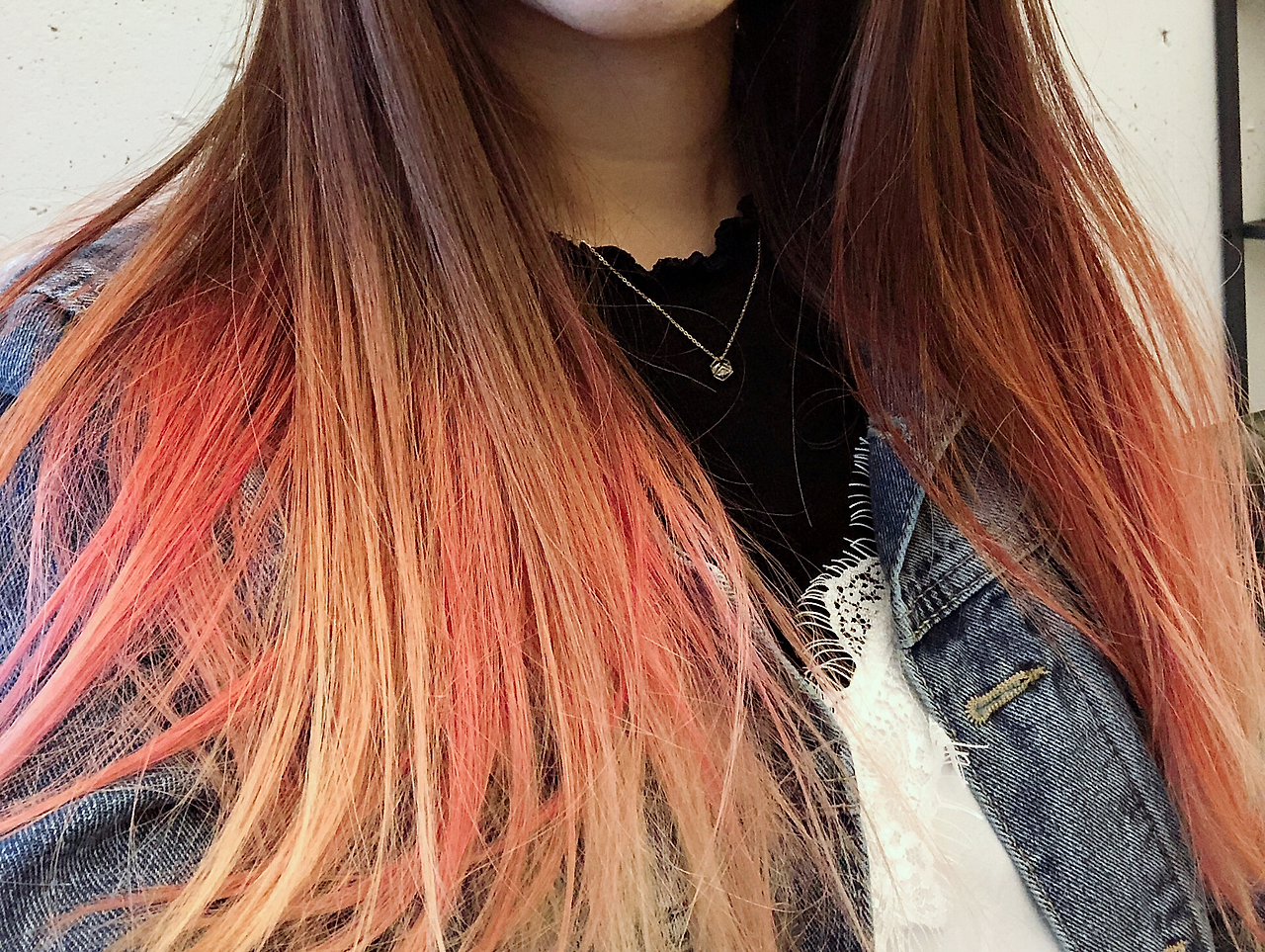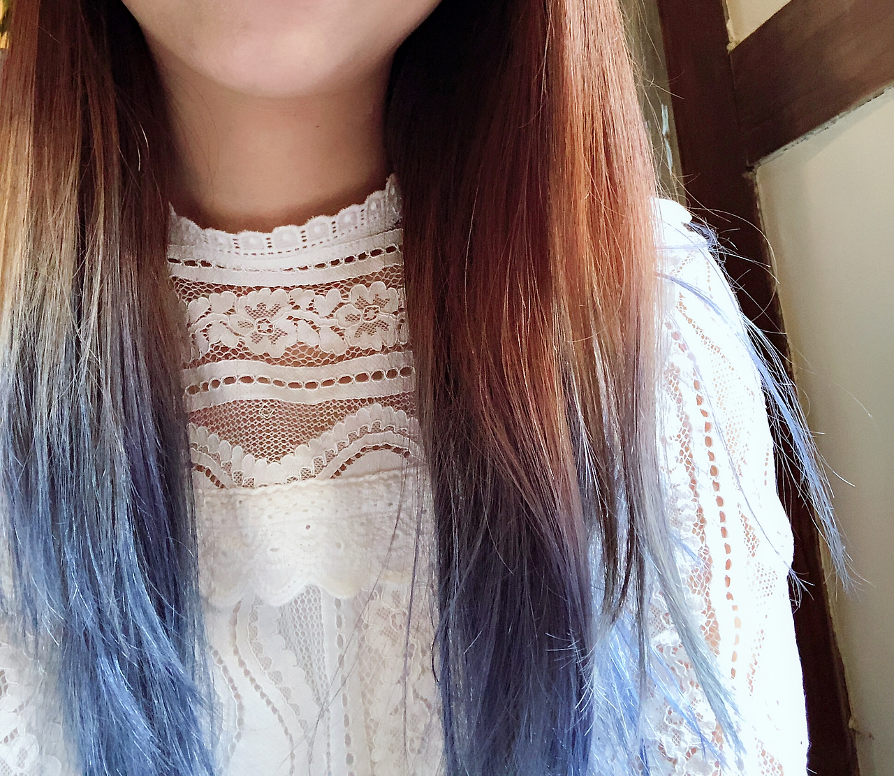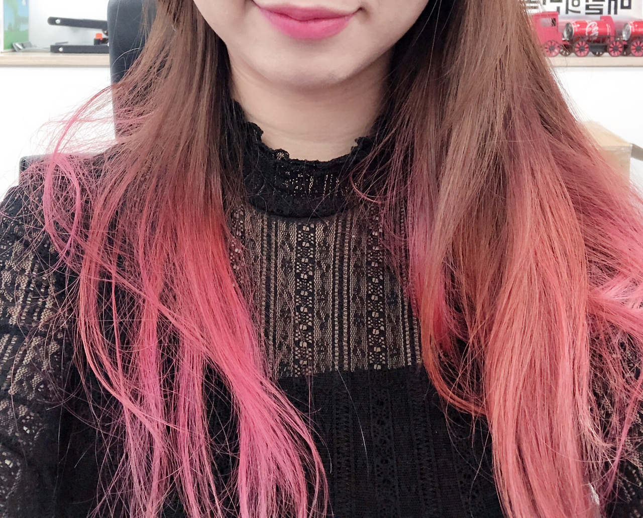 모든 걸 떠나 재미있었다. 내 원래 머리색, 모발상태, 염색할 때 배합한 색깔들, 사용하는 샴푸 등등에 영향을 받아 예상하지 못한 색으로 변하는 머리를 볼때마다 “우와 탈색 꿀잼이다!” 하고 혼잣말을 했다. 진한 퍼플은 빨강을 거쳐 핑크로 변했고, 진한 파랑은 카키빛이 도는 하늘색이 되었다. 빛이 있고 없을 때나 어떤 색의 옷을 입었느냐에 따라 달라지는 느낌도 즐거웠다.