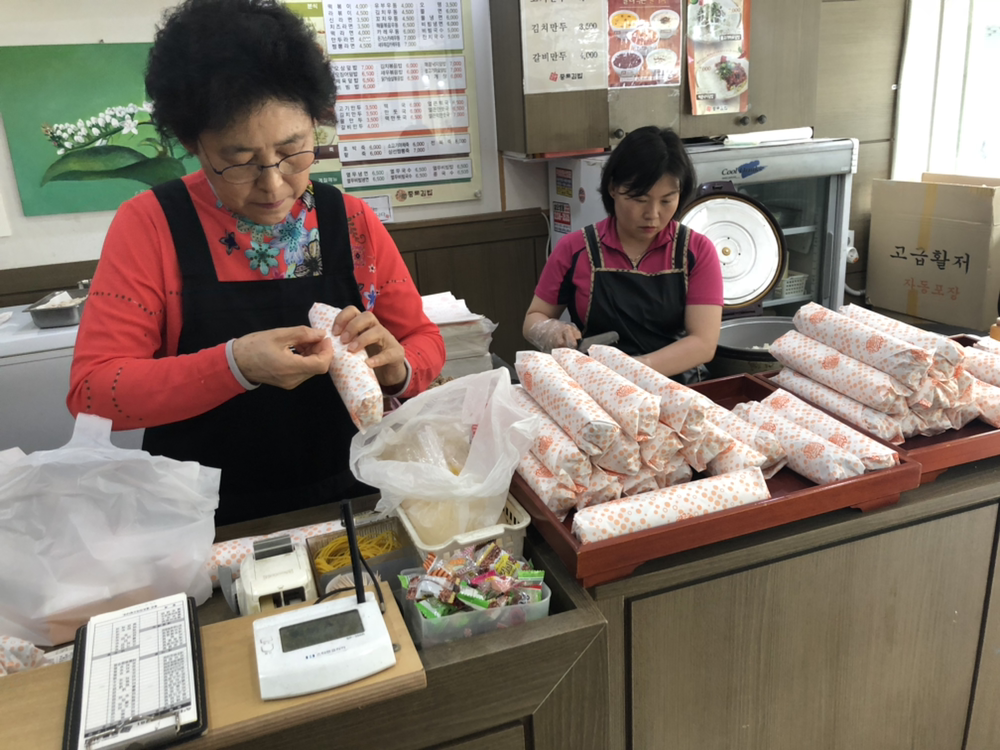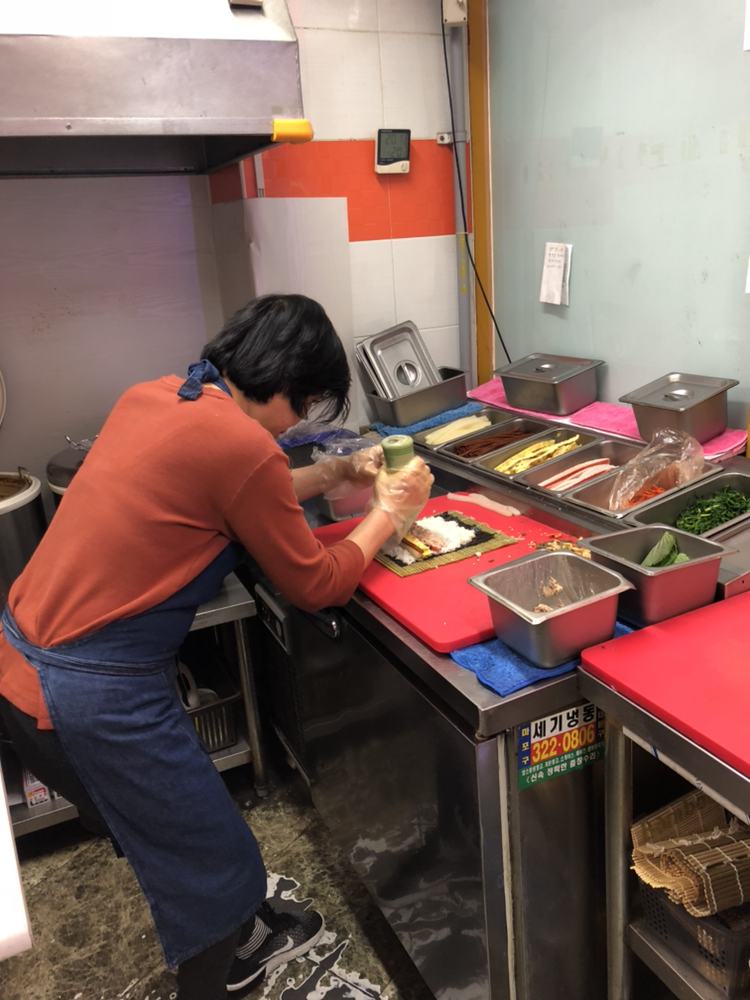 책을 만들기 위해 우선 김밥집 세 곳을 정했다. 나의 김밥 인생, 어쩌면 내 인생에 영향을 미친 세 곳이고, 누구에게 소개해도 칭찬받을 자신이 있었다. 김밥집에 찾아가 생각없이 지나쳤던 간판을 찍고, 같은 것만 시키느라 안 봤던 메뉴판을 분석하며 사장님 (또는 직원)에게 이전에 없던 질문을 던졌다. 익숙한 공간과 맛이 별안간 새로워졌다. 혼자 먹기에는 당연히 많은 양의 김밥을 사서 친구들과 나눠먹는 재미 또한 이전에는 몰랐다. 내가 좋아하는 식당을 나의 소개로 친구도 좋아하게 되는 것. ‘내가 김밥책을 만드는 건 그래서일까?’ 신나는 일이었다.