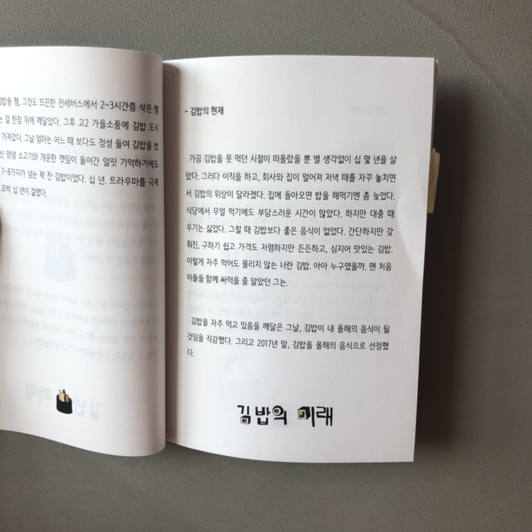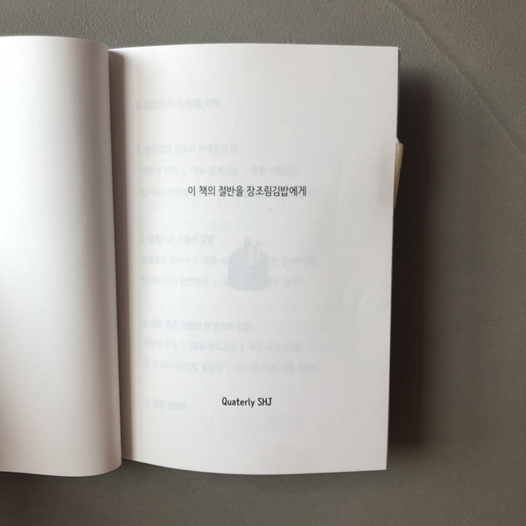 책 본문보다 더 긴 후기를 재미나게 읽었다면 이제 <김밥의 미래>를 만날 시간! 구매문의는 이곳 @quarterly_shj 으로! 오프라인 서점에 입고되면 업데이트 하겠다.