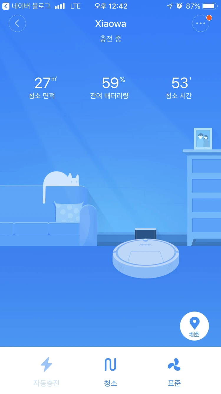 들고 오는 과정이 조금 험난했지만 사이공 집 한 켠에서 얌전히 충전중인 청소기를 볼 때마다 흐뭇하다. 두 번 들고 오라고 해도 그러겠다고 할 만큼. 외출한 사이에 mi home 앱으로 청소를 시키면 청소를 하는 그래픽과 함께 청소 시간, 청소 면적, 배터리 정보를 볼 수 있다. 청소를 다 끝낸 뒤엔 “청소를 마치고 충전기로 돌아가고 있습니다” 라는 알림과 함께 충전기로 돌아가는 그래픽이 나오는데 가장 귀여운 순간이다.