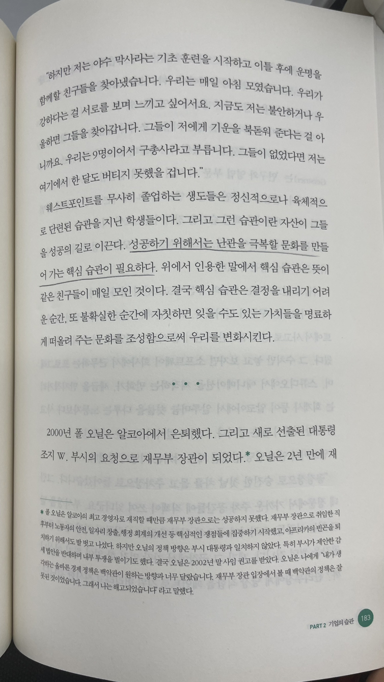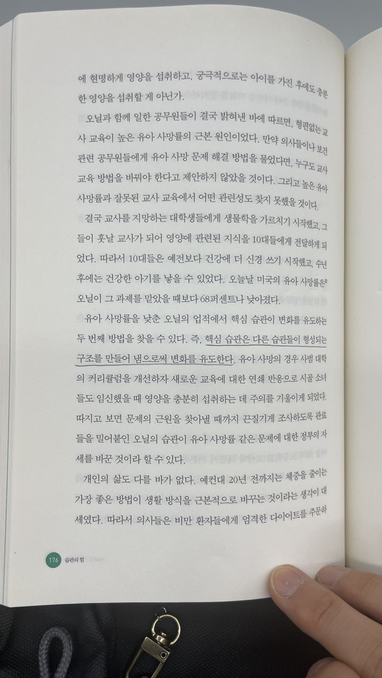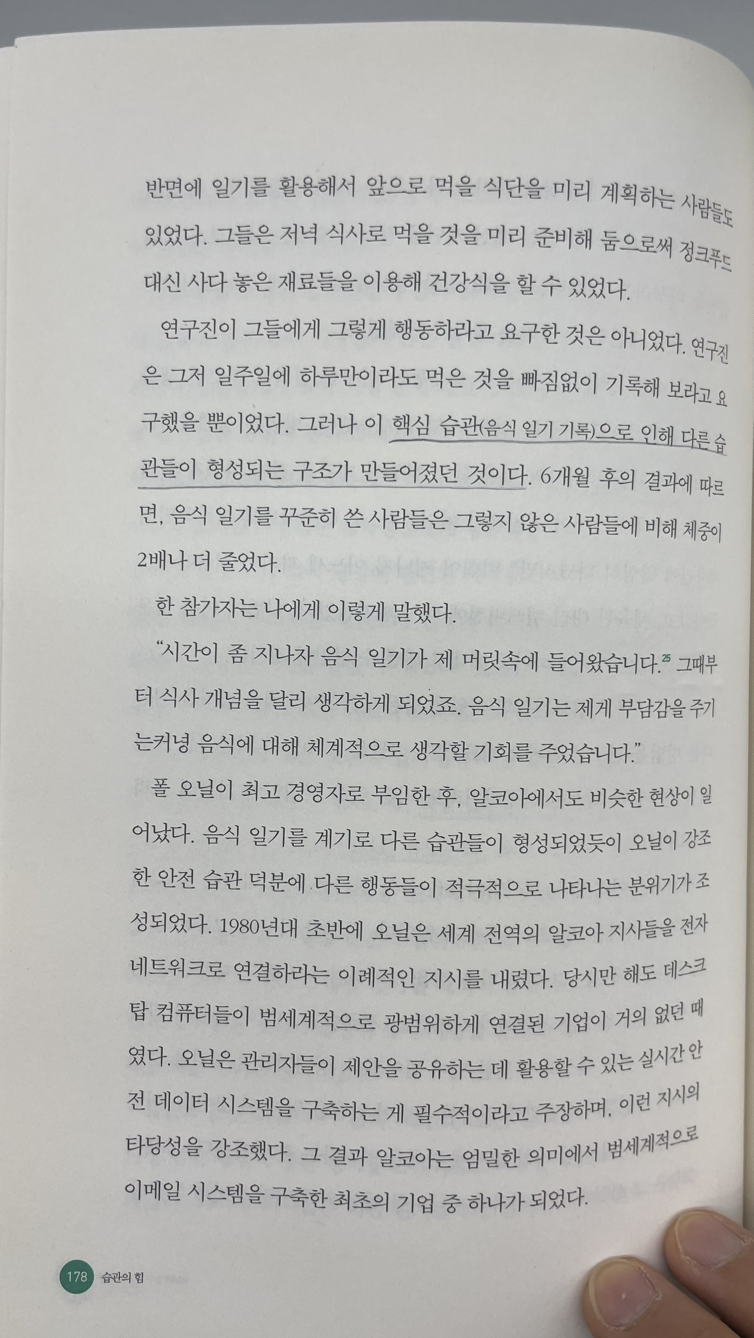 핵심 습관은 다른 습관들을 형성하는 구조를 만들어낸다. (저널 쓰기, 운동 등) 그리고 핵심 습관이 조직에 적용되면 이는 문화를 일구어 더 많은 변화를 이끌어낸다.