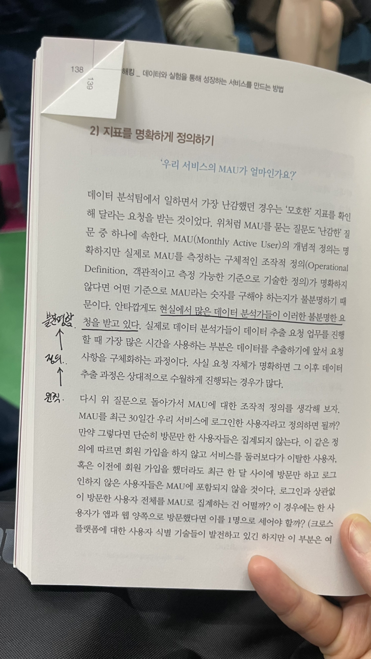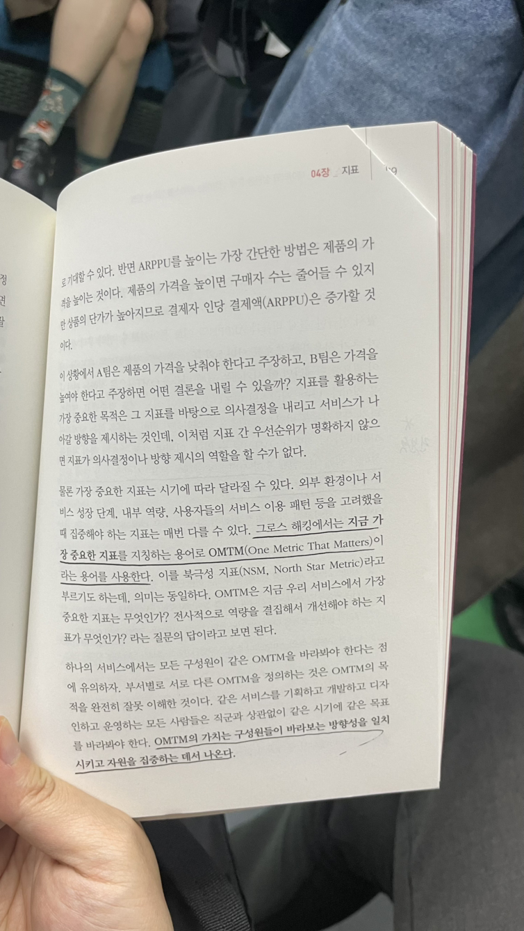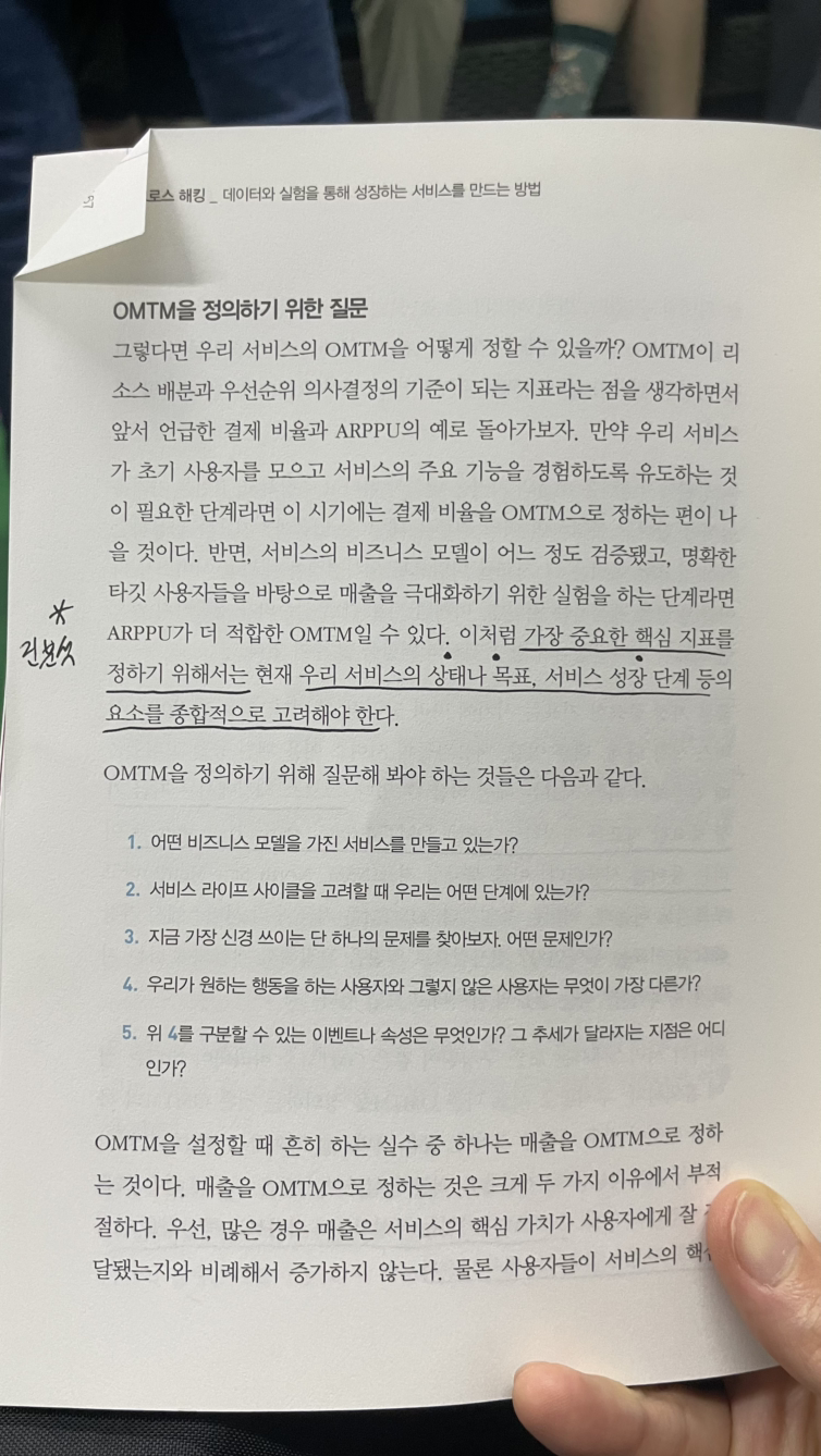 수많은 지표 중에서 우리는 무엇을 보고 행동해야 할지 정해야 한다. OMTM. 이는 현재 서비스의 상태, 목표, 단계에 따라 설정한다. 이는 kpi와 달리 액셔너블하고 성장을 목표로 한, 범 부서적 지표이다.
