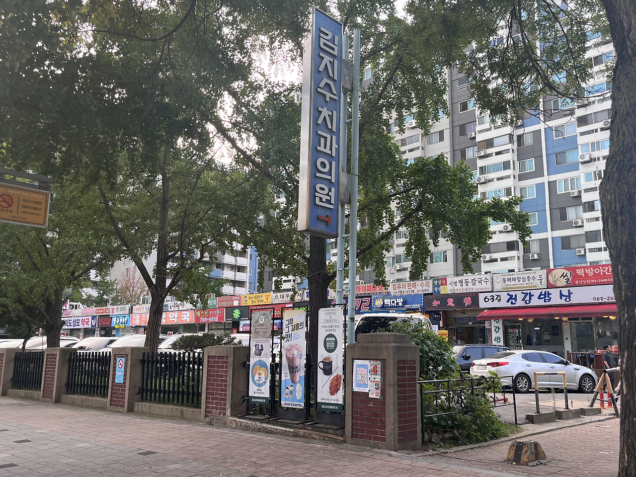 이곳 주택가를 걸으면 8~90년대 아파트 단지 풍경을 볼 수 있다. 아파트 앞 상가에는 작은 음식점부터 카페, 치과, 학원, 목욕탕에 이르기까지 없는 게 없다. 요새 지어진 주상복합이나 대형 아파트단지와 달리 작은 담벼락 하나만 사이에 두고 길가에서 바라보이는 상가 모습들이 추억을 떠올리게 한다.