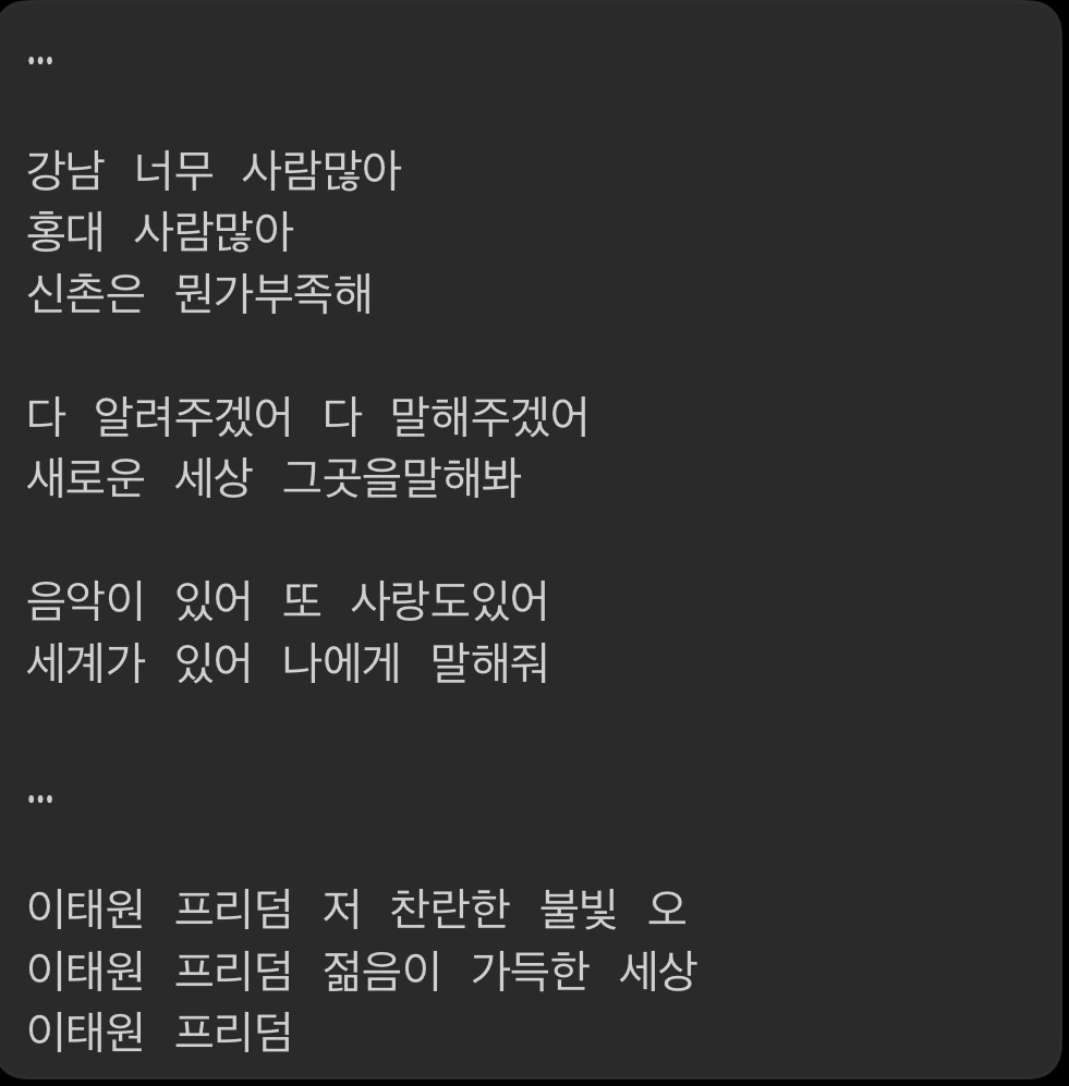 이태원의 시간은 이미 조금 지나갔지만, 이태원만이 가질 수 있는 힘은 여전하다. 역사적으로도 여러 문화가 어우러지는 곳의 저력은 항상 있었다. 다시 또 10년이 지나더라도 이태원은 이 모습 그대로 있으면서 문화 저변에 스며들 것이다. 우리나라에 이태원을 대체할 수 있는 곳은 없으니까.