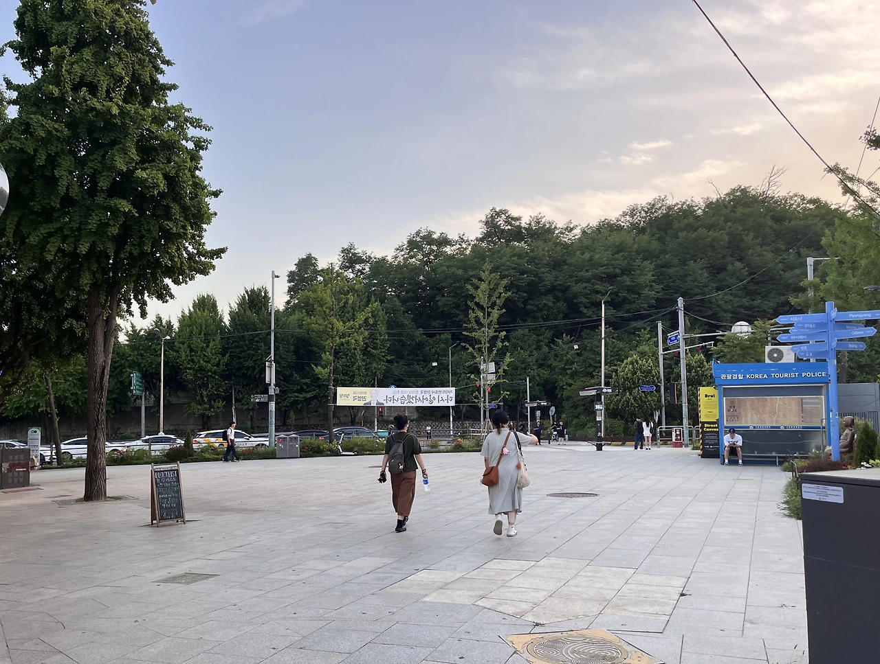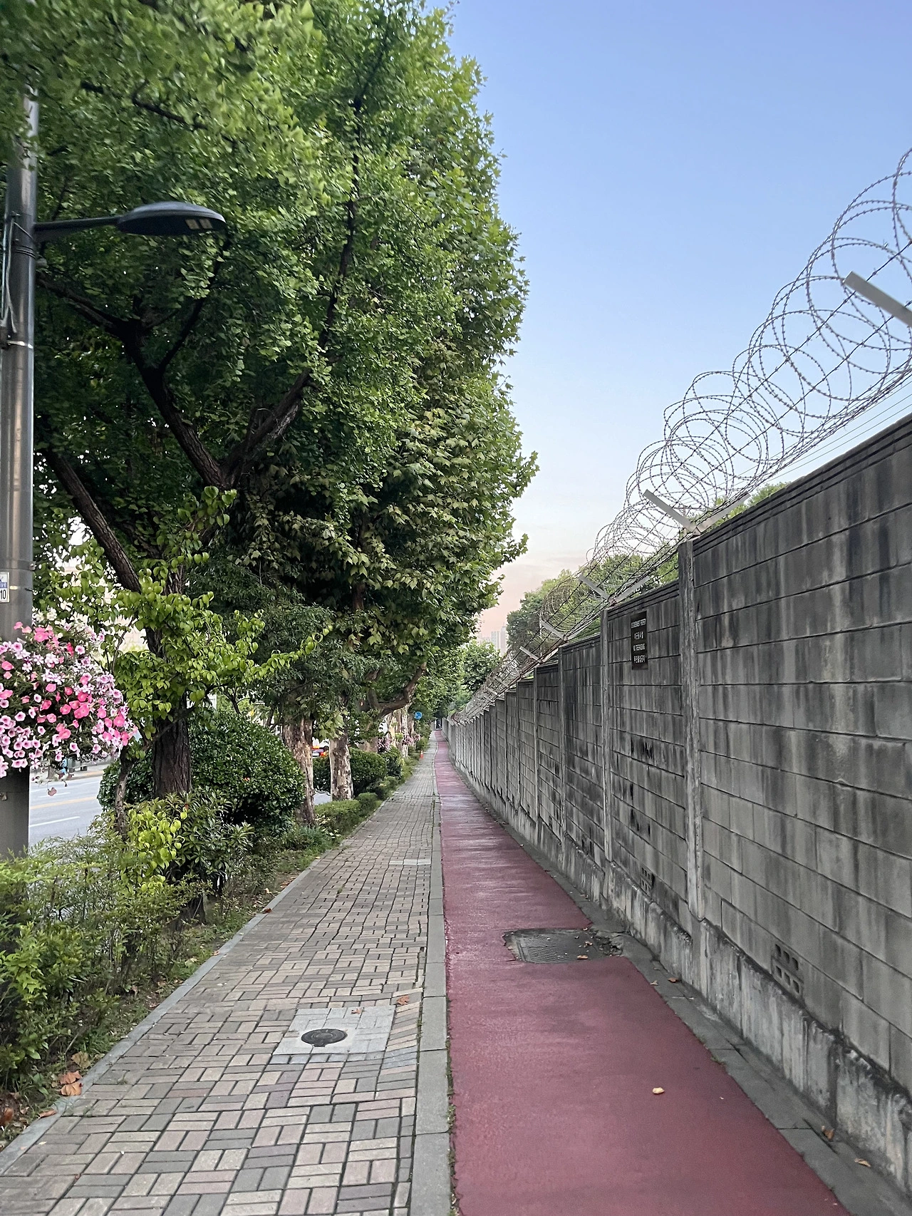 공터를 지나서도 좌우로 괜찮은 산책로가 있다. 횡단보도를 건너서 우측으로 가면 녹사평역, 더 가면 경리단길, 해방촌까지 이어지고, 좌측으로는 구 미군기지 담장을 따라 무리 없이 내리막을 즐길 수 있다. 한강 방향으로 쭉 뻗은 이 돌담길은 옆으로 보이는 넓은 도로와 맞물려 서울에서 흔하지 않은 이국적인 느낌을 만들어낸다.