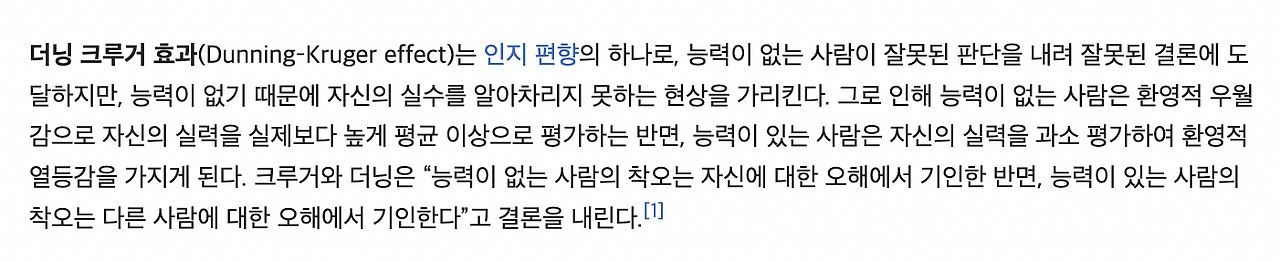 이렇게 좋은 피드백을 받고 나서 변한 나의 글을 보며 순간 더닝 크루거 효과가 생각났다.