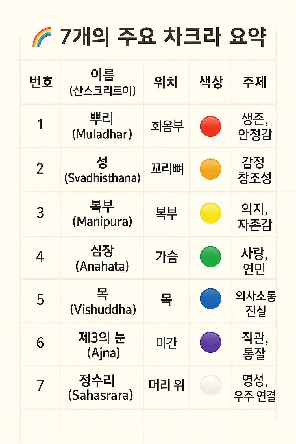 차크라는 요가에서 에너지센터의 개념입니다. 크게 우리 몸에는 7개의 에너지 센터가 있는데 각각의 에너지 센터들이 원활히 작동할 때 그 능력을 제대로 쓸 수 있다고 봅니다. 에너지 센터를 활성화시키는