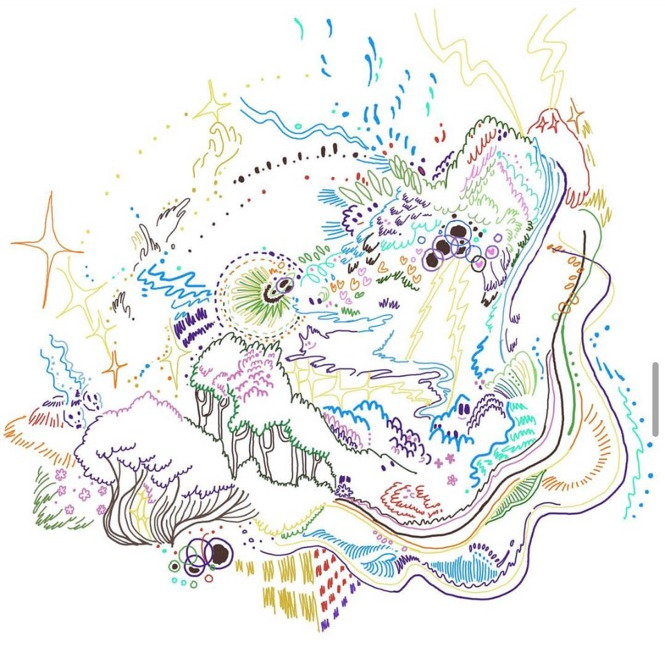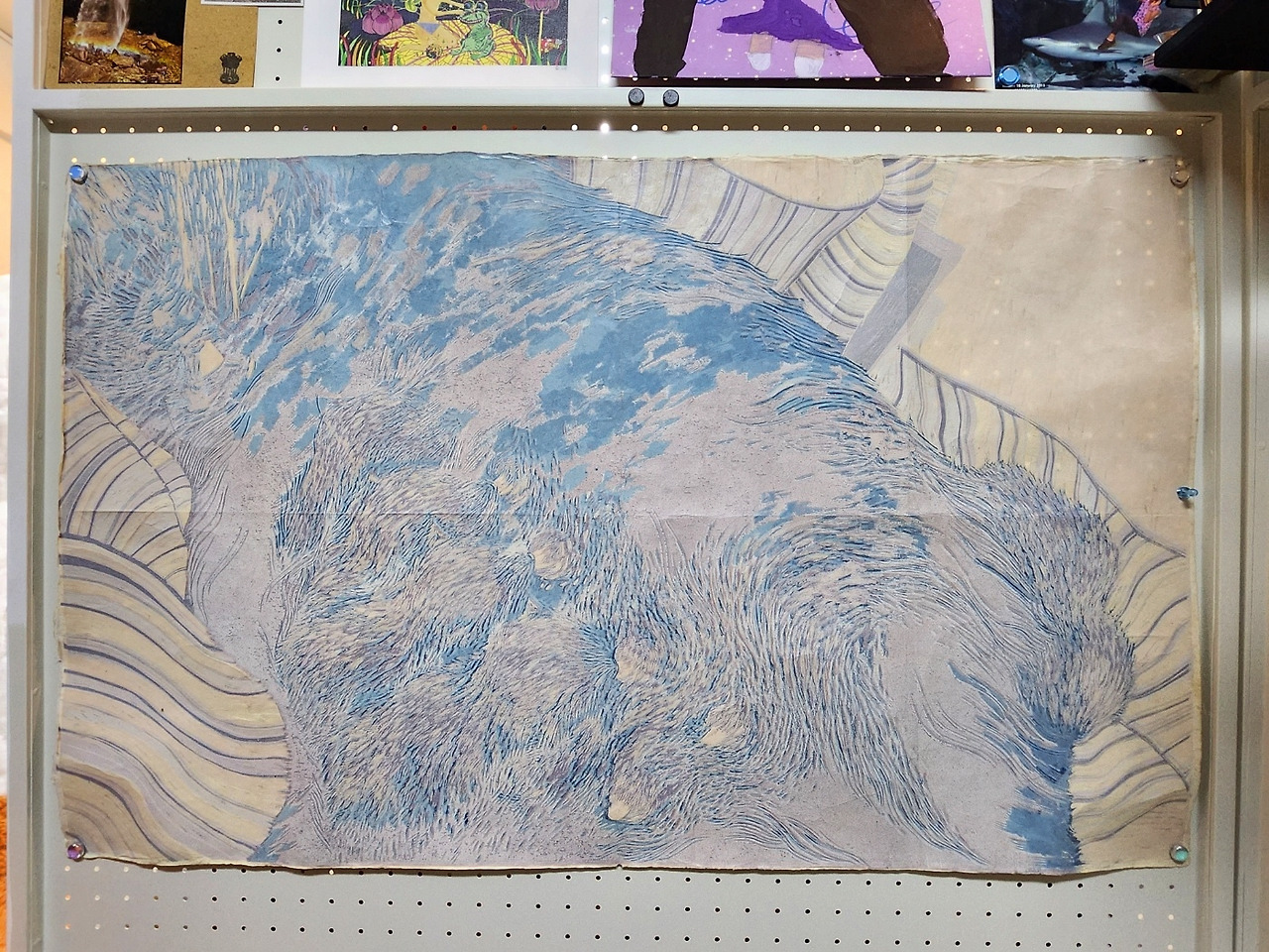 그런 고민들 끝에 사람, 인간에 대한 섬세한 이해와 기본적인 예의를 지키는 게 너무 어렵게 느껴질 때가 있었다. 그 시절 로미를 만났고 로미의 나긋나긋함 그리고 천진난만함, 그리고 로미의 작업에서 정제되지 않은 선과 어디로 튈지 모르지만 사랑스러움을 간직한 색들을 만나 나도 모르게 방어기제들이 해제되고 평안하진 않지만, 평화로운 에너지를 전해받았던 기억이 있다.