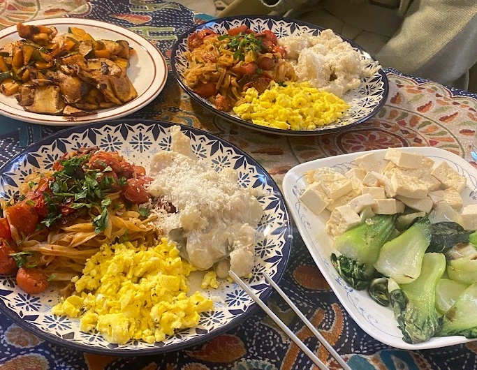 부족한 단백질과 탄수화물을 스크램블드 에그와 쌀국수 볶음으로 채우고 청경채, 두부, 버섯구이를 곁들였다. 맛은 좋았지만 생각했던 비주얼이 나오지 않아 사진으로 많이 기록하지 못했다. 레시피와는 다르게 파마잔 치즈가 없어 마지막 과정을 생략하기도 했고, 바나나는 1시간 정도 라임 시럽에 재워놨어야 했는데 시간이 부족해서 라임 제스트에서 색도 제대로 우러나오지 않은 말간 라임향이 나는 시럽물에 바나나를 띄워 먹는 것에 가까웠기에 아쉬움이 남았다.