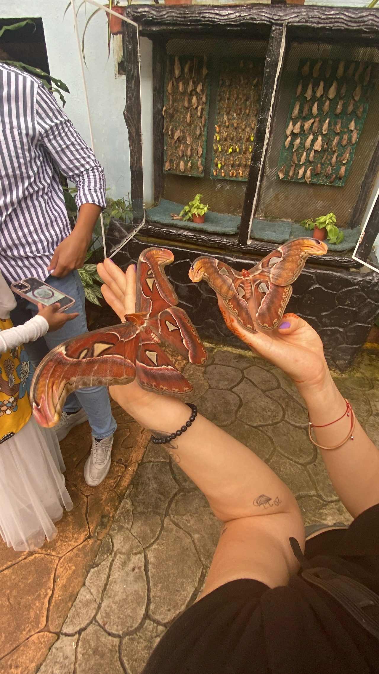 운 좋게도 폐장 시간까지 남아있는 이 불친절한 손님에게 부화방으로 보이는 벽걸이용 유리 찬장에 갇혀있던 나비들을 직접 볼 수 있는 기회가 생겼다. 전날 밤 갓 태어난 아틀라스 나방 한 쌍과, 검은 날개에 노란 얼룩이 있는 십여 마리의 나비들이 처음 세상 밖으로 나오는 순간이었다.