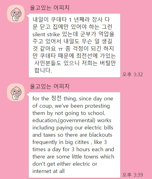 미얀마 친구를 통해 들은 충격적인 내전(coup) 이야기