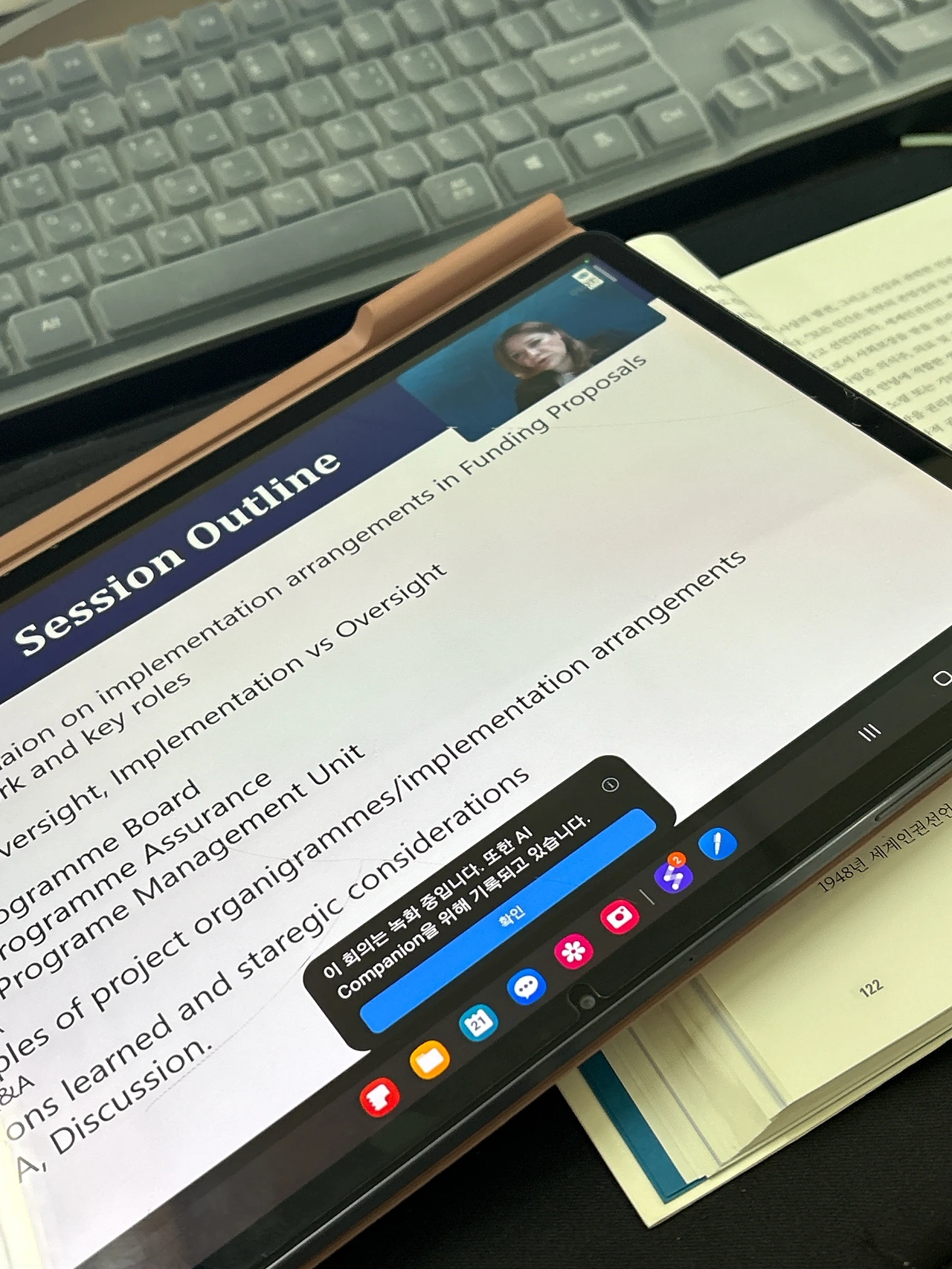 뿐만 아니라 공공기관이기에 UNDP와 같은 UN산하 다자기구에서 주최하는 포럼이나 워크숍에도 참여할 수 있고 공공기관에서는 보고서를 어떻게 작성하나 검토하며 배울 기회도 있다.