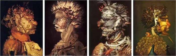 특히 사계절을 대표하는 동식물들을 활용해 땅, 공기, 물, 불 등 세상 만물의 근원이 되는 것들이 황제를 이루고 있는 모습은 황제가 만물의 근원이며 풍요라는 것을 의미한다. (이것을 눈치챈 그 시대 최고의 지성을 겸비한 '교양인' 이자 '학문과 예술의 비호자'였던 루돌프 2세는 아르침볼도만의 그림을 사랑할 수 밖에 없었던 것 이다.)