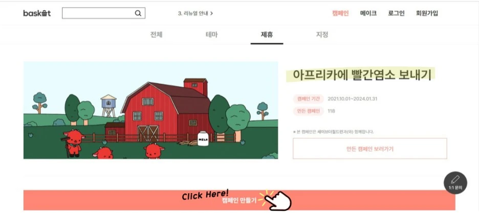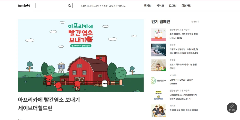바스켓을 통해 개설된 캠페인들에 동참해보는 것은 어떨까요?