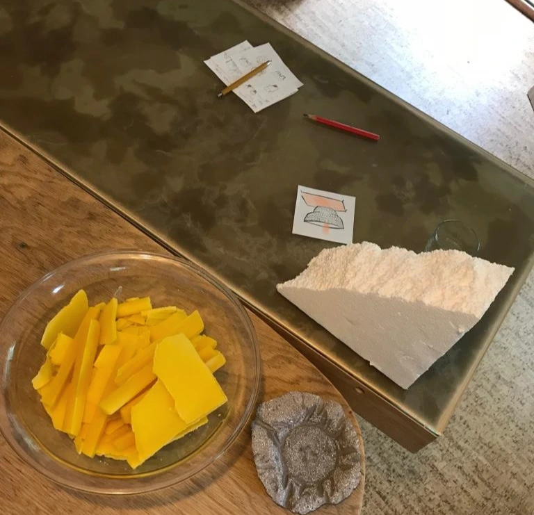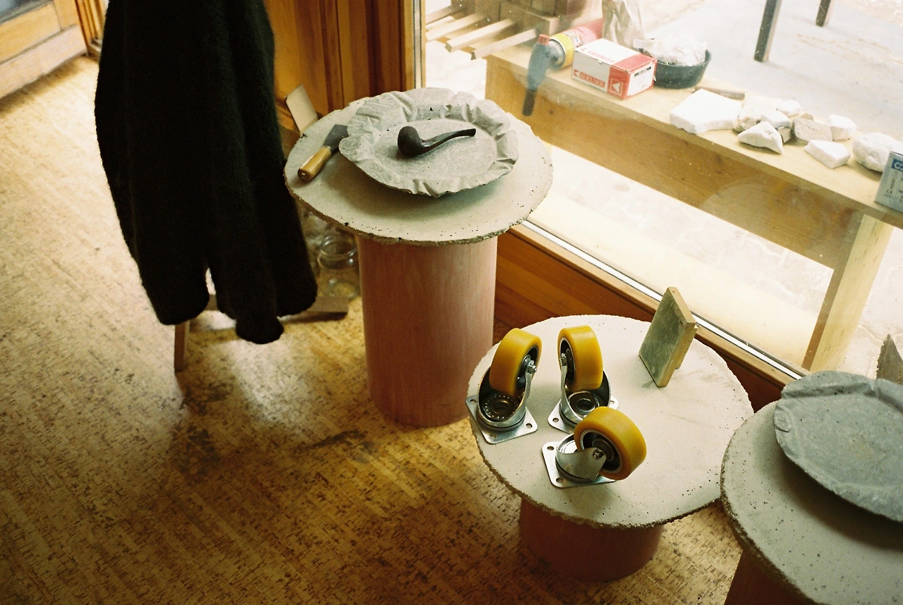 나는 페스트 쪽에 묵고 있었는데 그들의 스튜디오는 부다 쪽 도심에서 멀리 떨어진 곳에 있었다. 데니스가 도심까지 마중을 와주었다. 함께 트램을 타고 그들의 스튜디오로 가면서 이야기를 나누었다. 내 또래 같아서 조금 긴장이 풀렸다. 그는 어렸을 때부터 아버지가 건축가셨기 때문에 일을 돕다 자연스럽게 자신도 건축을 하게 되었고, 다른 일은 생각해보지 않았다고, 건축을 업으로 삼는 것에 만족한다고 했다. 그리고 그는 굉장히 멋있는 말을 했다. 그렇게 현장에서 건축을 배워왔기 때문에 현장에서 직접 건물을 짓는 작업자의 입장을 생각하지 않을 수 없다고, 건축을 설계할 때는 작업자도 안전하고 즐겁게 건설할 수 있는 설계를 한다고 말했다. 참여하는 사람들의 분위기가 그 건물에 녹아들 것이라고 믿으면서. 현장에서 일하는 사람이 행복하게 지을 수 있는 건물이라니, 정말 멋진 생각이지 않은가. 모두의 행복한 에너지가 깃드는 건축물을 상상했다. 그런 이야기를 하다 보니 금방 도착했다. 한적한 마을을 걸어가자 룩카스의 집이자 그들의 스튜디오인 공간이 있었다. 커다란 레브라도 리트리버와 룩카스의 어린아이, 사랑스러운 부인이 있었다. 그들은 정말 그럴 이유가 없었음에도 친절하게 내게 자신들의 모든 작업을 보여주고 설명해주었다. 그들의 작업들은 사려 깊고 실험적인 것들이 많았다. 작품들이라고 해야 더 맞을 것이다. 작업자를 존중하고 환경을 존중하고 사용자를 존중한다는 것이 느껴졌다. 직접 기르는 벌들이 만든 비즈왁스로 만든 테이블, 남은 콘크리트를 다양하게 굳힌 접시 시리즈, 넓고 큰 철판을 종이 접듯 접어 의자 다리에 얹은 의자 등 그들의 작업은 제각기 독특했고 미적으로도 훌륭했다. 매달 주변 예술가들이 릴레이 형식으로 만드는 페이퍼도 있었다.