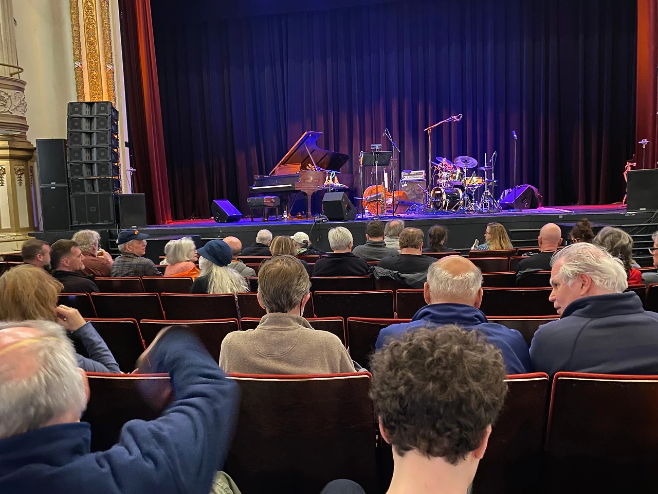 사실 별 계획이 없었던 터라 다음으로는 테네시 극장 바로 맞은편인 비쥬극장Bijou Theater에서 열리는 다프니스 프리에토 Dafnis Prieto의 공연을 보러 갔다. 배도 부르고 공연장도 따뜻해서 공연이 별로면 꿀잠이나 자자 싶었다. 시작 전 십분동안 앞 사람들의 머리를 구경하며 정말 빅이어스 페스티벌의 관객 평균 연령이 높긴 한가보다.. 생각했다. 그리고 성비도 압도적으로 남성이 높아보였다. 아는 지인이 일본 도쿄에서 열린 사운드 박람회에 가봤는데 전부 구부정하신 빵모자를 쓴 백발 노인 분들만 줄지어 있었고, 다같이 청음을 하기 위해 한 방에 모여 경쾌하게 흐르는 '마틸다~!'하는 재즈곡을 듣는 풍경이 너무 웃기고 귀여웠다고 하는게 생각났다. 할아버지와 재즈의 어떤 상관 관계가 있는 것일까.