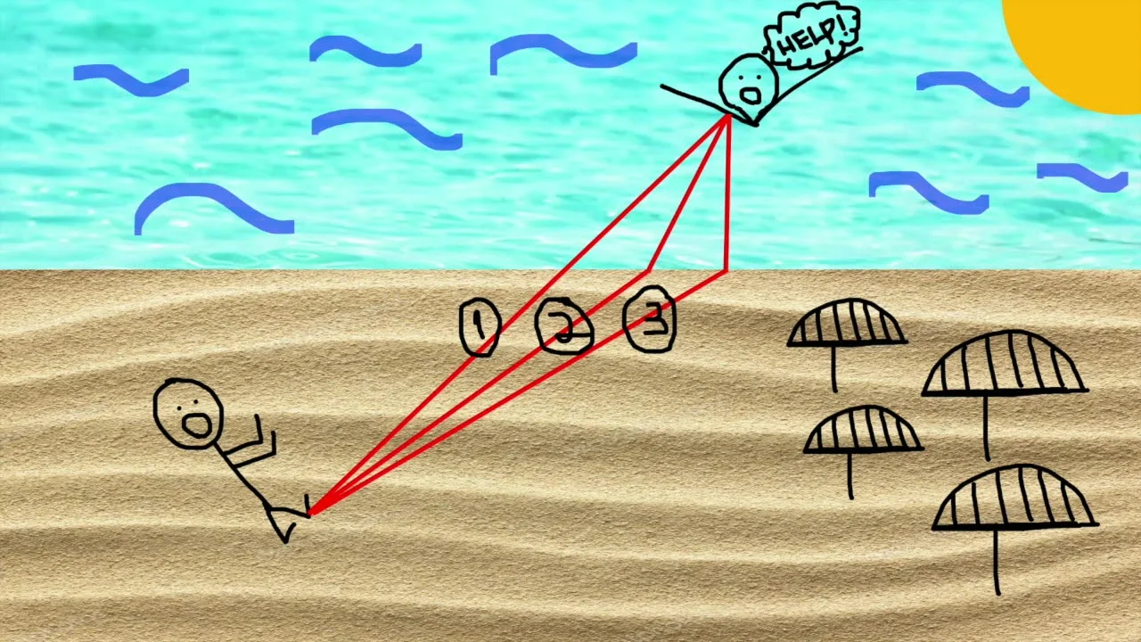 책에 나온 세 가지 역사를 바꾼 수학적 발전은 페르마 정리, 뉴턴의 운동 법칙, 좌표평면의 발명이다. 먼저, 페르마 정리라고 하면 흔히들 “n이 2보다 클 때, x^n+y^n=z^n 방정식을 만족하는 x, y, z (x, y, z는 모두 양의 정수)는 존재하지 않는다”라는 정리를 먼저 떠올린다. 나 또한 그랬다. 페르마 하면 생각나는 것이 저 정리밖에 없었다. 하지만 저 정리는 페르마의 마지막 정리이고, 여기서 말하는 페르마의 정리는 훨씬 흥미로웠다! 빛은 물을 지나갈 때 매질이 바뀌기 때문에 진행 속도가 바뀌고, 결론적으론 굴절한다. 이 때문에 빛이 지나가는 경로는 항상 최단거리이다. 마치 바닷가에 빠진 사람을 구하기 위해 해변가로부터 달려오는 해상구조대가 사람까지 일직선으로 가는 것이 아닌, 빨리 달릴 수 있는 모래사장에서 최대한 많이 달린 다음, 느린 물속에선 짧은 거리로 가는 것처럼 말이다. 하지만, 여기서 굉장히 괴상한 추론을 할 수 있다. 빛은 해상구조대처럼 가장 짧은 거리를 스스로 ‘판단해서’ 움직이는 것일까? 사실 빛은 지적 생명체인 것일까? 이처럼 목적성을 가진 것을 ‘Telos’라고 하는데, 이는 현대 과학에서 완전히 부정하고 있는 개념이다. 얼마나 말이 안 되는 일이냐 하면, 대류 현상을 단지 ‘뜨거우면 위로 가고, 차가우면 아래로 갈려고 하기 때문에’라고 설명하는 것과 같다! 오히려 빛이 최단경로를 스스로 판단해 간다는 이야기보다 터무니없는 설명조차 찾기 힘들 것이다. 이 괴상망측한 추론은 페르마 정리가 나오고 무려 16년 동안 해결되지 못했다. 빛은 파원을 스스로 계속 만들며 사방으로 전진하는데, 가장 빠른 경로가 아닌 것들은 다 상쇄된다는 하위언스의 원리가 나오기 전까지는 말이다. 하지만, 책에 나온 설명은 너무나도 턱없이 부족했다. 마치 교수님이 ‘이 내용은 어려우니 이 정도까지만 알고 지나가자!’라고 하시는 것 같았다. 책에는 빛이 상쇄되는 이유를 단지 ‘수학적으로 정확히 따져보면’이라고 설명해 놓았기 때문이다. 때문에 직접 인터넷에서 찾아보고, 공부해보아야 했다.