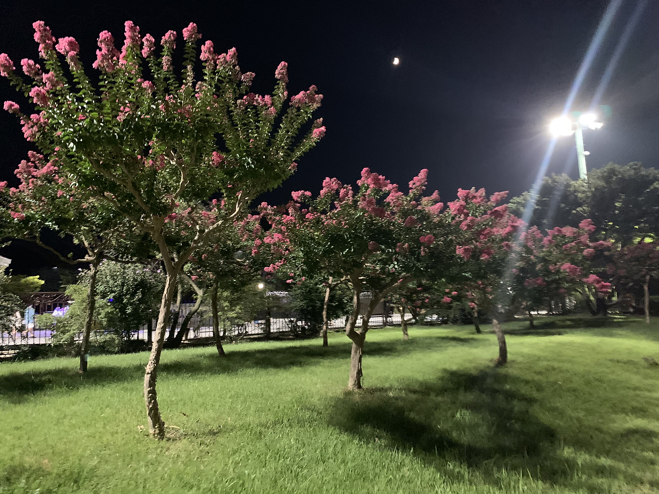 동궁과 월지를 열심히 둘러보고 다시 퇴장할 때였다. 마지막이라는 아쉬움을 달래 듯이 넓은 잔디밭에 분홍색 꽃이 방울방울 매달려 있었다. 저 꽃은 무엇이길래 저렇게 예쁠까... 열심히 사진을 찍고 나서, 꽃의 정체를 찾았다. 바로 배롱나무 꽃. 방문했을 때가 여름이어서 그런지 운 좋게 배롱나무에 꽃이 핀 모습을 볼 수 있었다.