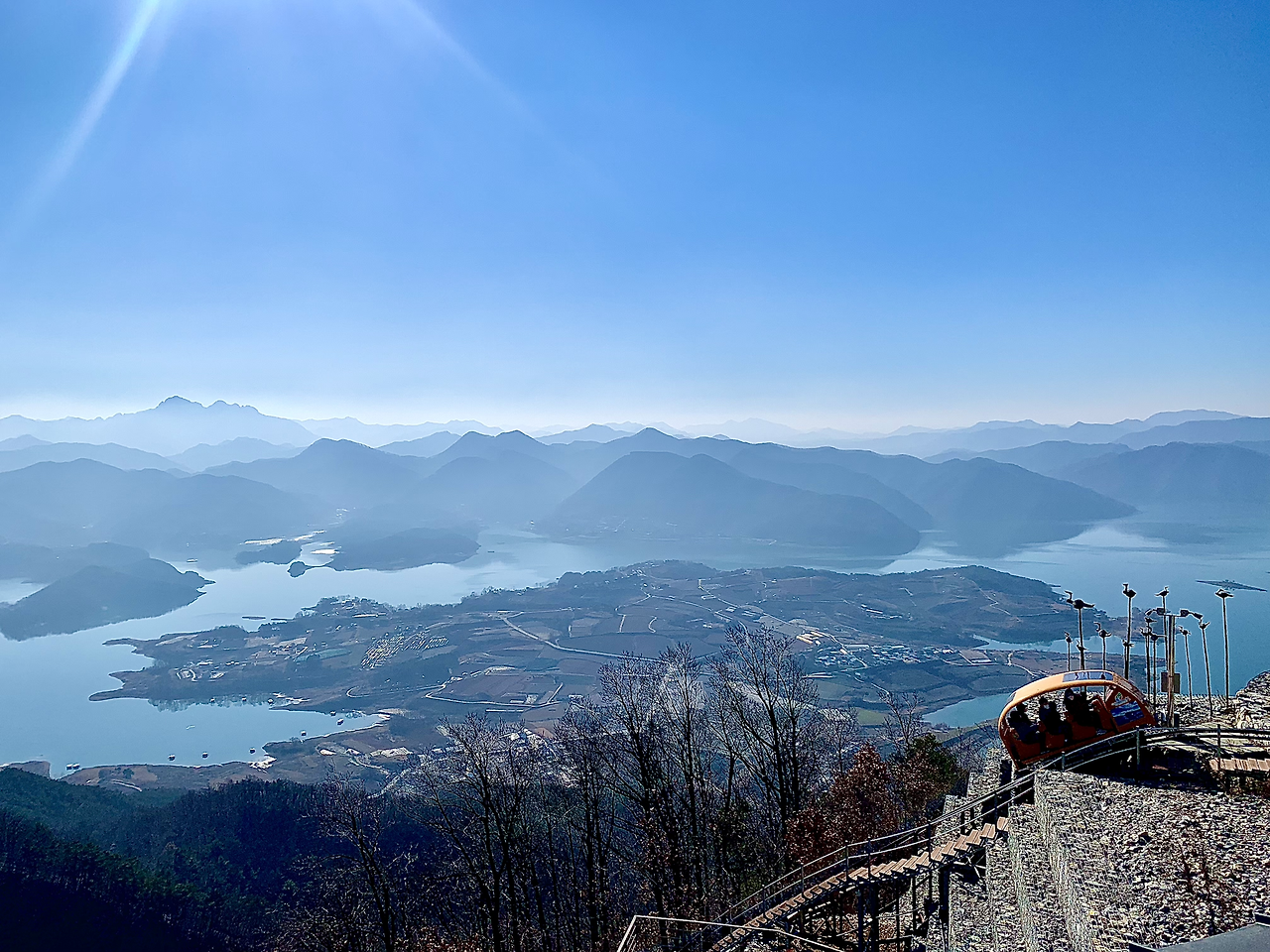 케이블카를 타고 전망대에 올라가면, 황홀함 그 자체다. 호수와 산 그리고 하늘의 조화가 이루 말할 수 없다. 넓은 호수는 바다 같고 산들은 마치 섬 같기도 했다. 짜릿함까지 원한다면, 케이블카보다는 모노레일을 추천한다. 직접 타지는 못했지만, 가파른 경사를 오르는 모노레일은 보기만 해도 심장이 쫄깃해졌다.