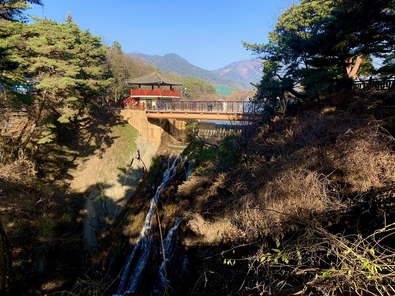 사실, 제천 여행을 이끈 건 사진 한 장이었다. 아찔하게 떨어지는 폭포 위로 멋을 뽐내고 있는 다리와 정자, 바로 용추폭포다. 다리는 바닥이 투명해 발아래로 폭포가 떨어지는 특별한 경험을 할 수 있다.