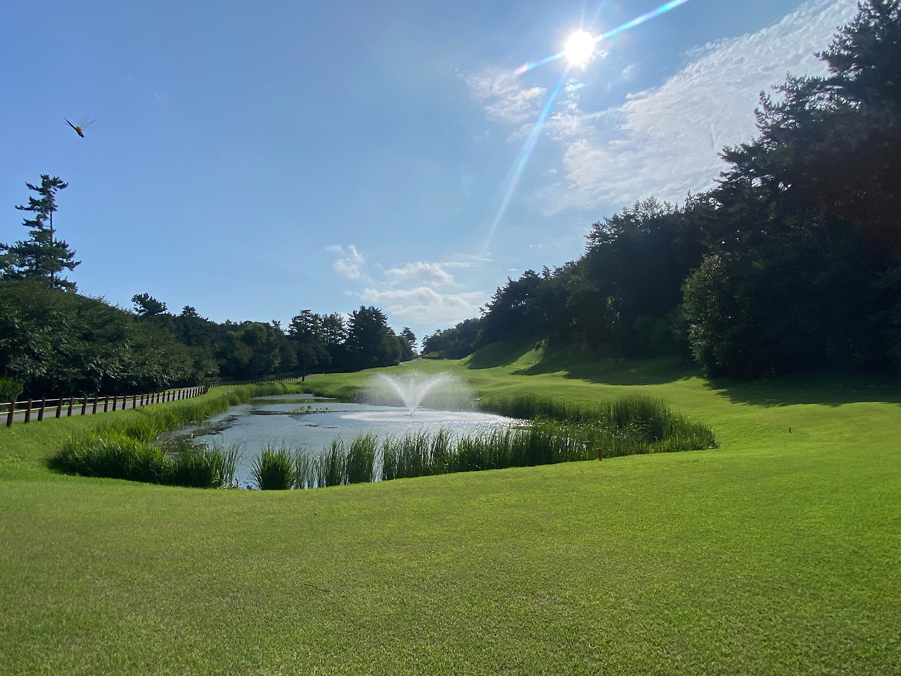 티샷이 잘 맞고, 햇살이 얼굴을 비추고,