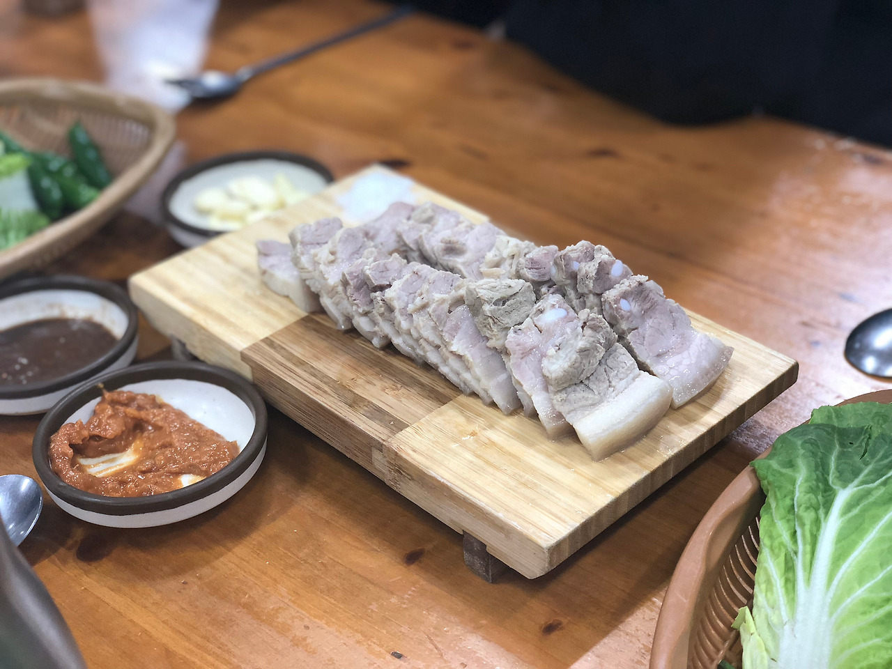 주문은 몸국과 돔베고기.(돔베고기는 따로 먹어보고 싶었으나 먹어야 할게 너무 많은 관계로.. 여기서 먹었다.) 돔베고기는 수육과 크게 다르지 않았으나, 고기 자체의 맛이 잘 느껴졌다. 잘 삶아졌고, 비계와 살코기의 비율도 적절했다. 2명 이상 가게 되면 한 번 시켜봄직한 음식이다.