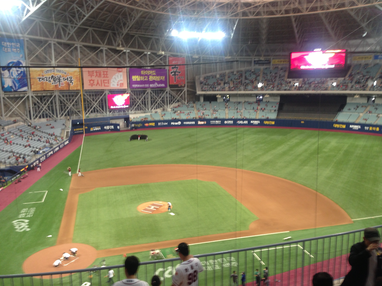 다른 구장과 다른 점이라고 한다면 역시 지붕이 덮여있다는 점입니다. 비가 오나 눈이오나 천둥이 치나 여기서는 야구가 진행됩니다. 또 한가지. 전광판이 상당히 작다는 점입니다. 개인적으로는 그렇게 작다고 못느꼈지만 사진을 찍어놓고 보니 작아보이긴 하네요. 그래도 선수들 이름, 타율 등등은 잘 보입니다. (이번 시즌 끝나고 교체한다는 이야기가 있더군요.)