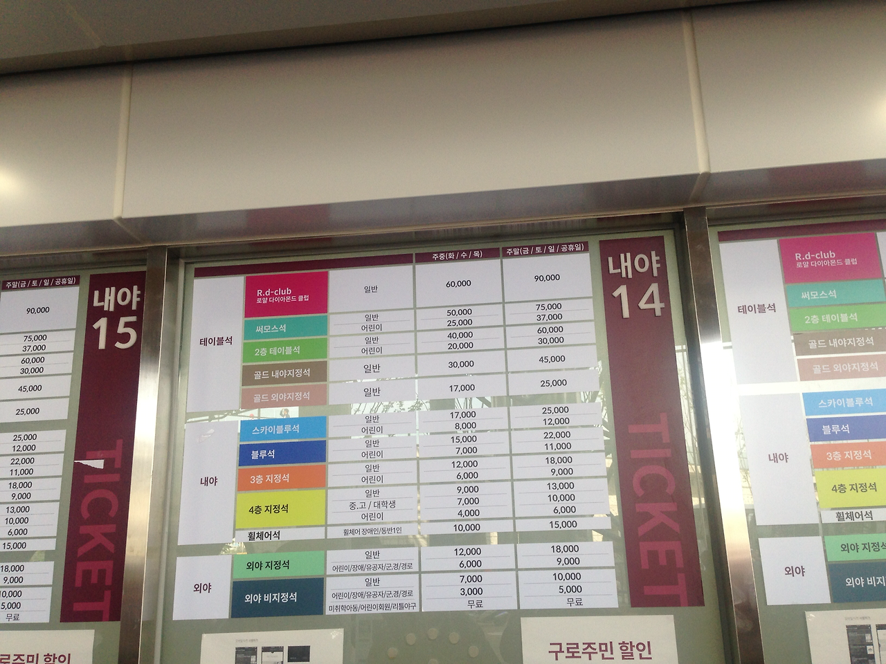 티켓가격은 이렇습니다. 고척돔의 좌석 가격 책정에 대해서는 말들이 많지만, 그것은 논외로 하고. 좌석이 2만석도 안되는데, 티켓가격을 이렇게 나눠 놓은 것을 보니. 어떤 씨..뭐시기 영화관이 생각나기도 하더군요. 저희는 이미 4층 지정석을 예매했기 때문에 어디를 선택해야 할지에 대한 고민은 없었습니다.