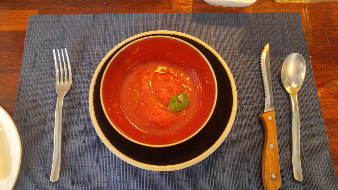 아마 독특한 향이 나는 가스파초로 기억하는데.. 여름메뉴 스타터로써 제격이었다.