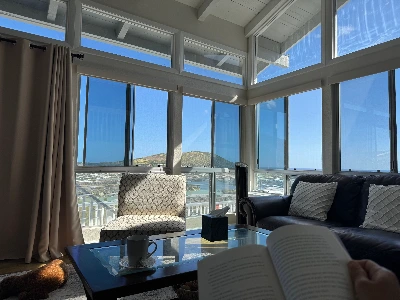 숙소 마루에 앉아