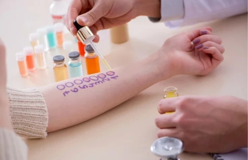 검사는 이렇다. 양팔에 일부러 주사바늘로 30군데 가량을 줄지어 찔러 미세한 구멍을 낸다.
