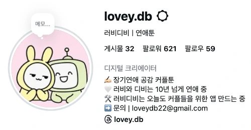 러비디비 연애툰 : https://www.instagram.com/lovey.db/