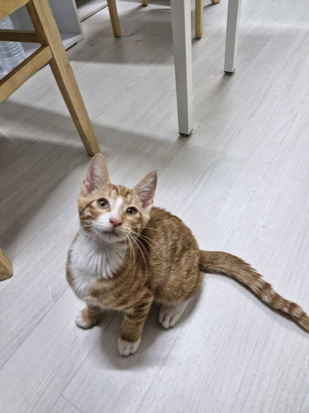 작은 고양이 한 마리인데 삼개월 정도 되어서 정말 작고 귀엽네요.