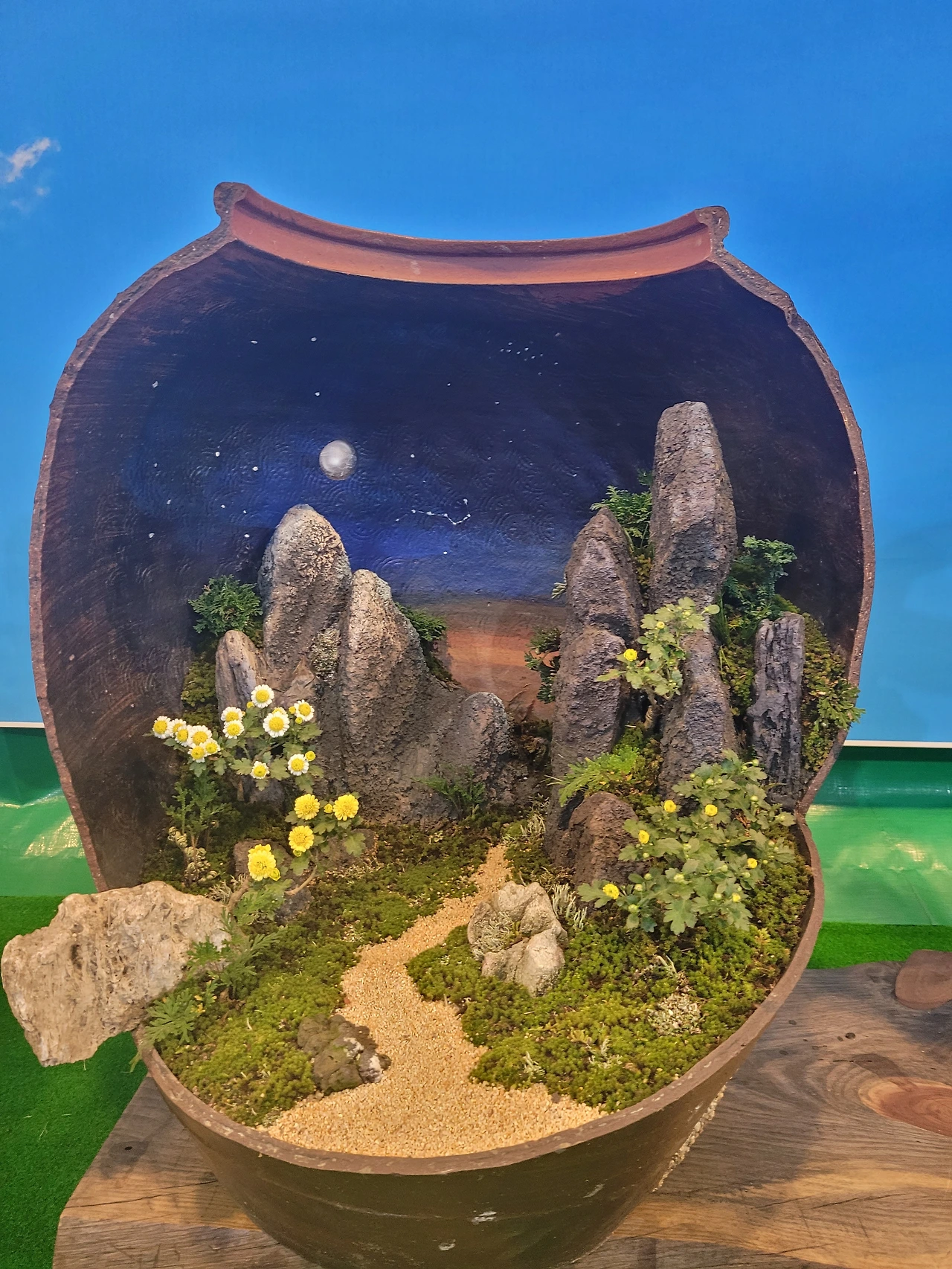 유림공원과 어은교 일대에서는 매년 이맘때쯤 "유성국화축제"라는 것이 열린다. 유성구와 국화가 어떤 관계가 있는지는 모르겠으나, 겨울을 앞둔 10월 마지막으로 꽃구경을 하염없이 할 수 있다는 점에서 매우 좋은 행사라고 생각한다. 각양각색의 국화와 핑크뮬리 등 화초로 거리를 물들이고, 국화를 테마로 한 여러 조형물들을 세워 포토 스팟을 여럿 제공하는 한편, 간소하지만 푸드트럭도 몇 개 와서 간식을 제공하기 때문에 구민들이 부담 없이 즐기기에 좋은 축제이다. 그중에서도 아주 주관적인 내 소견으로는 유성국화축제의 하이라이트는 수석과 분재 전시이다.