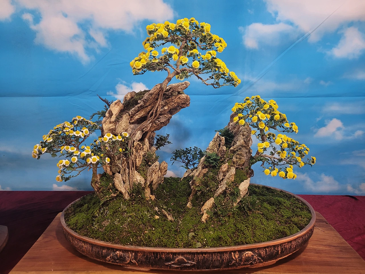 쉬운 단어로 말해서 수석(壽石)은 예쁜 돌, 분재(盆栽)는 예쁜 식물을 말한다. 매년 어은교 아래에서 수석 전시가 있다는 것은 알았으나, 국화를 중심으로 한 분재 전시가 있다는 것은 올해 방문에서 처음 알았다. 아래 사진들을 보면 알겠지만, 분재 정말 아름답더라... 그 모양새나 기품에서 느껴지는 멋도 있었지만 이렇게 식물을 가꾸기까지 사람들의 노고와 애정이 함께 느껴져서 더욱 가치 있게 느껴졌다. 개인적으로는 수석 전시보다 더 자주, 더 크게 감탄하며 감상을 했다. 어느 정도의 감동이었냐면, 관람을 마치고 며칠 지나 퇴근을 하는데 날이 추워서 식물들이 잘 있으려나 걱정이 들 정도였다. (내가 주인도 아닌데 말이다.)